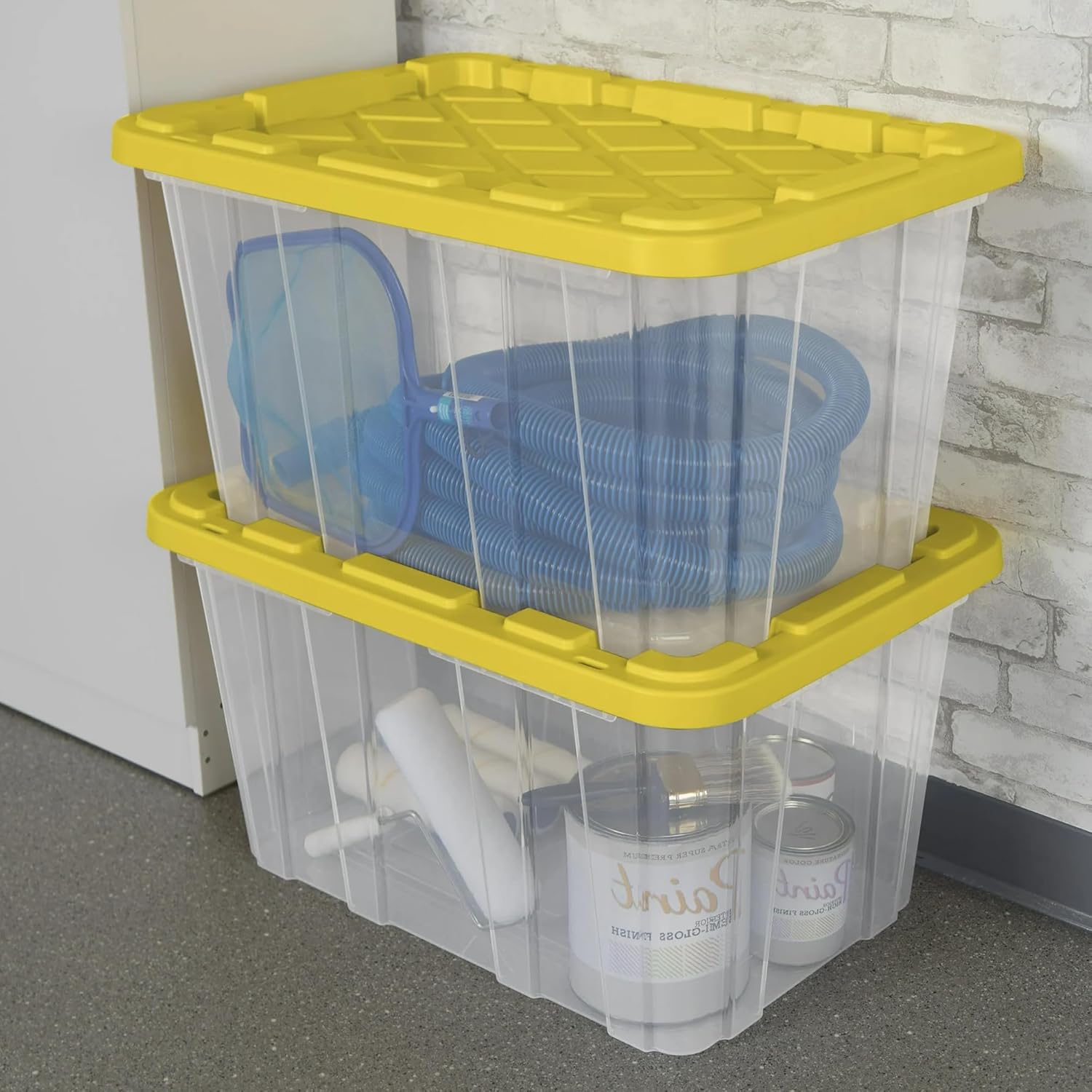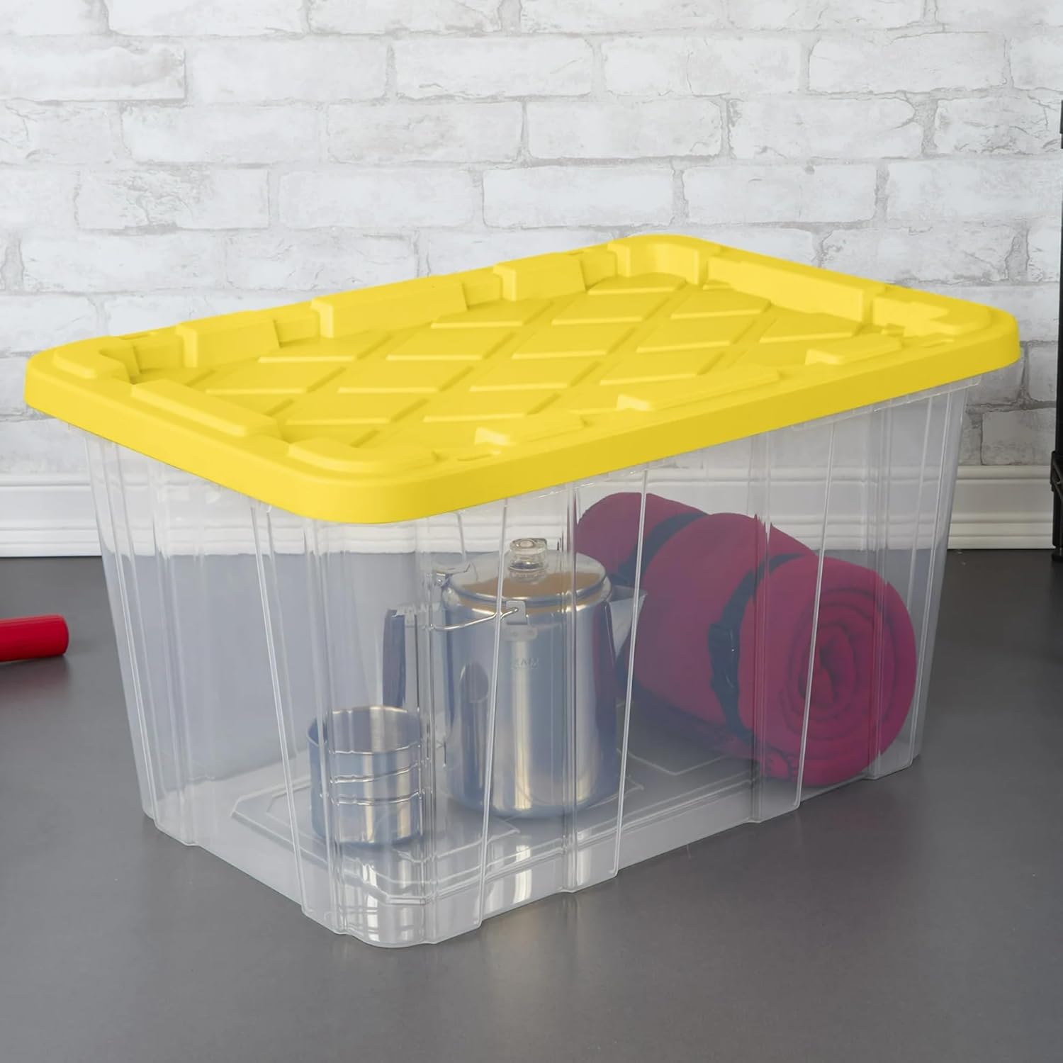 Reinforced Snap-Fit Lids for Protected Storage:Each storage bin with lid features a reinforced snap-fit lid that helps keep your stored valuables and contents contained, reducing the risk of spills or dust exposure. This reliable design helps make these 27-gallon storage totes a practical option for protecting seasonal items, pantry supplies, or personal belongings during both storage and transport.