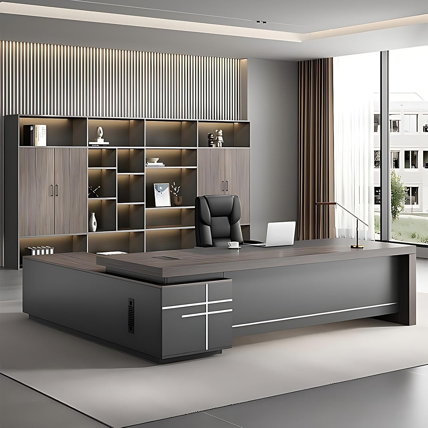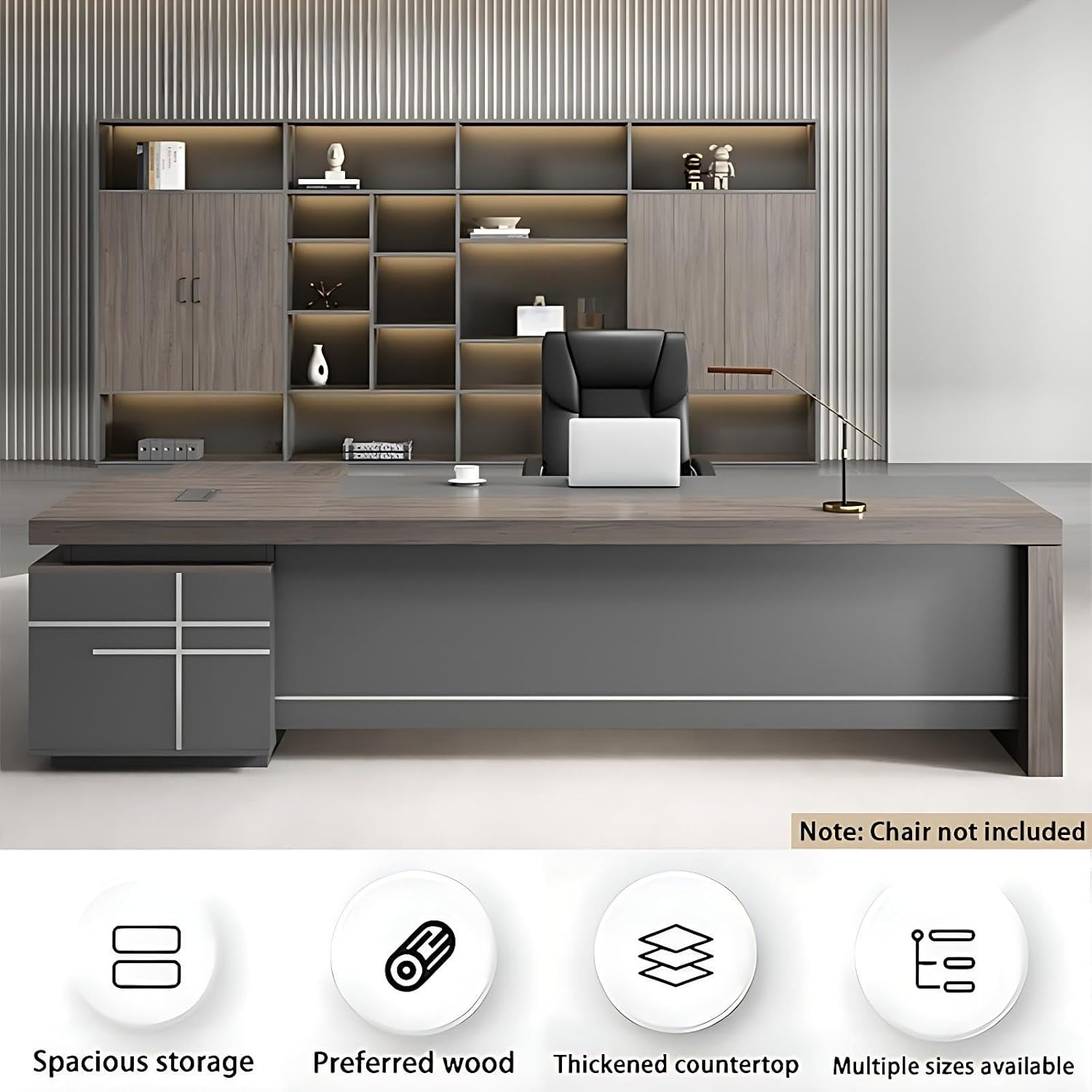 Cable Management and Computer Host Solution: Eliminate cord clutter with built-in cable channels and a dedicated computer host cabinet. Designed for a clean, safe setup, this modern executive desk ensures every device is organized, making your home office desk or office table efficient, polished, and tech-ready.