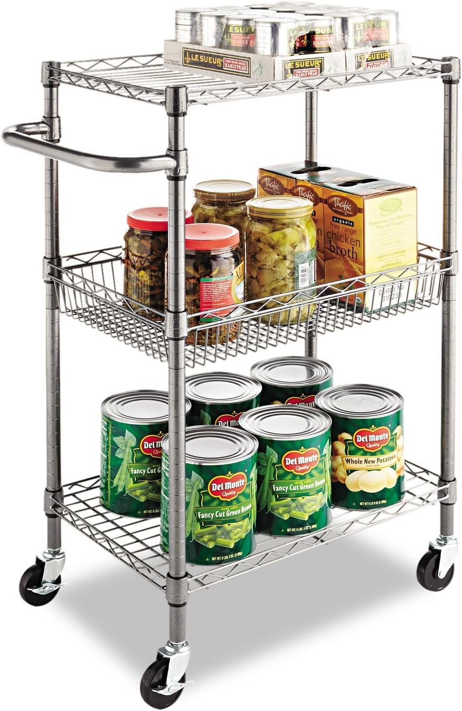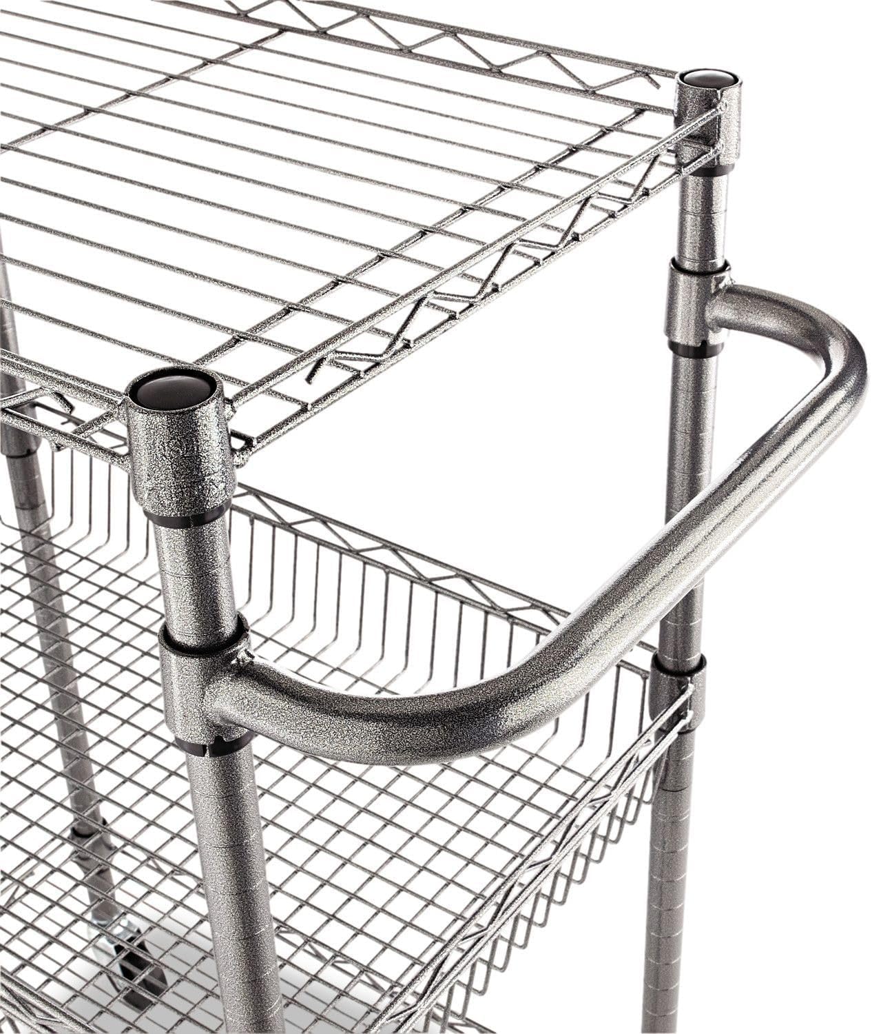 Customers find the utility cart well-built and functional, particularly noting its effectiveness in garages. The product is easy to assemble with no tools required and features a standout finish with its silver background and black over-finish. They appreciate its smooth movement on hardwood floors and its compact size that fits in pantry closets, while also praising its storage capacity for kitchen equipment and small appliances. Customers consider it worth the price.