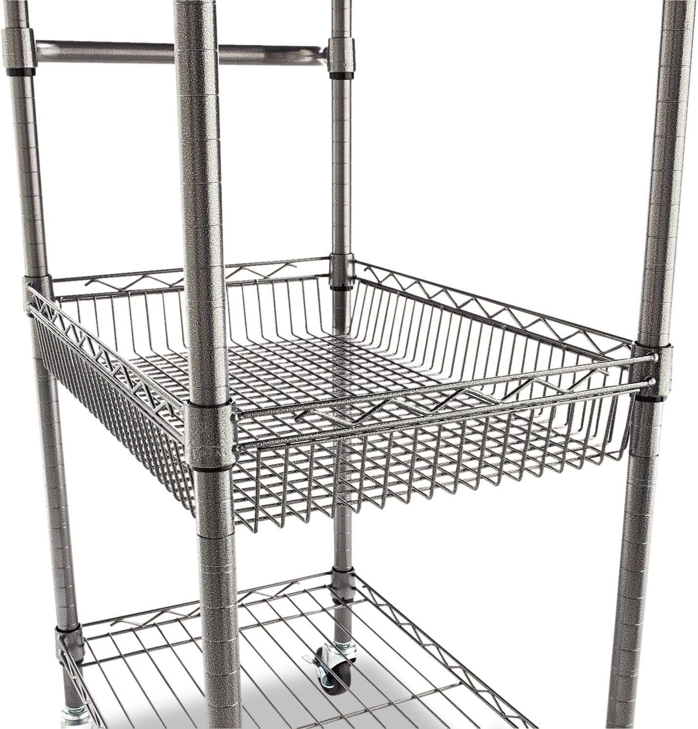 Ideal storage solution for industrial and commercial use. snap-together design assembles in minutes. strong welded wire construction provides exceptional strength and stability. open design allows air circulation and reduces dust build-up. finish on surface prevents corrosion in wet, humid environments. safeguards for freezer, restaurant, food service, indoor/outdoor or other wet/dry storage requirements. rolls with ease on four casters (two locking).
