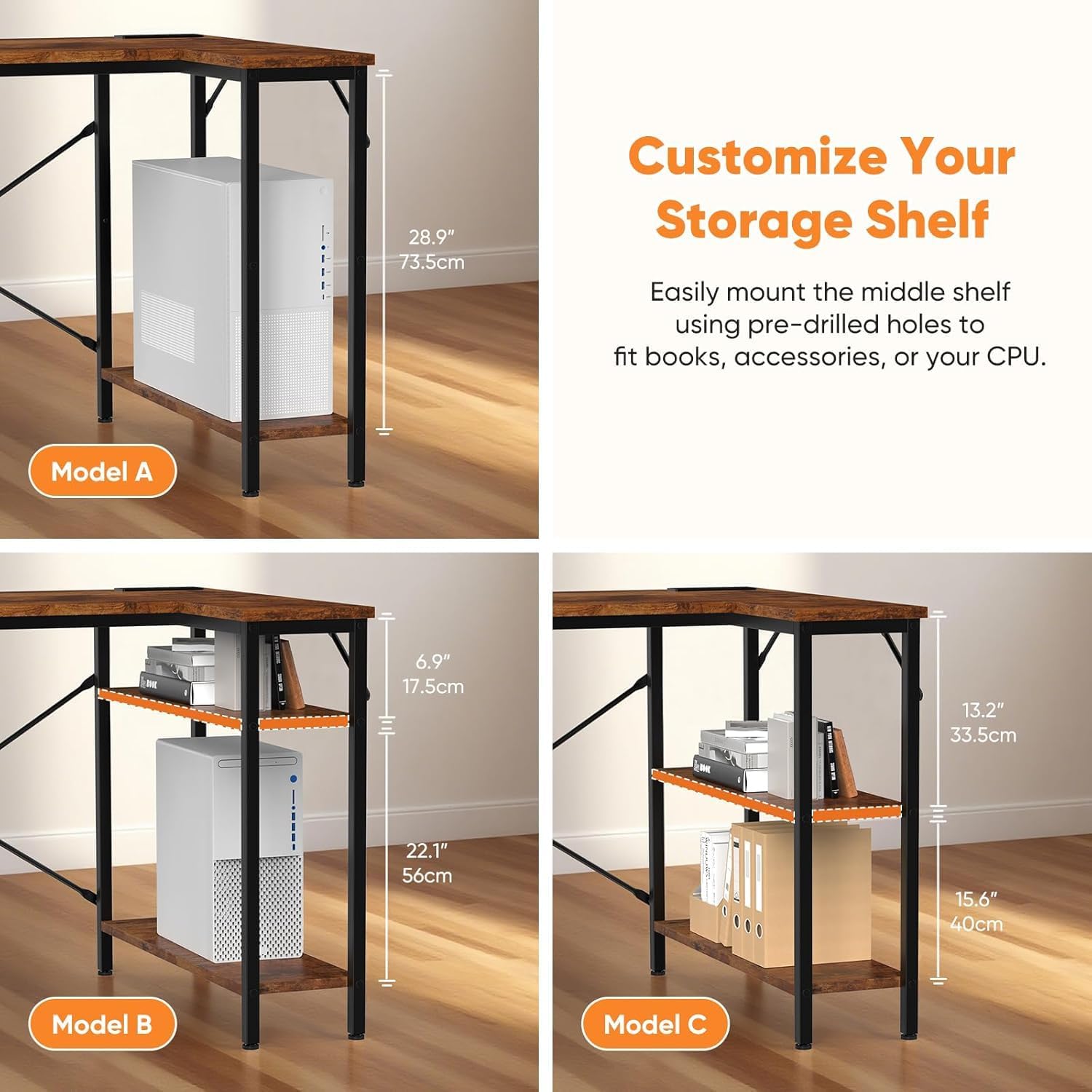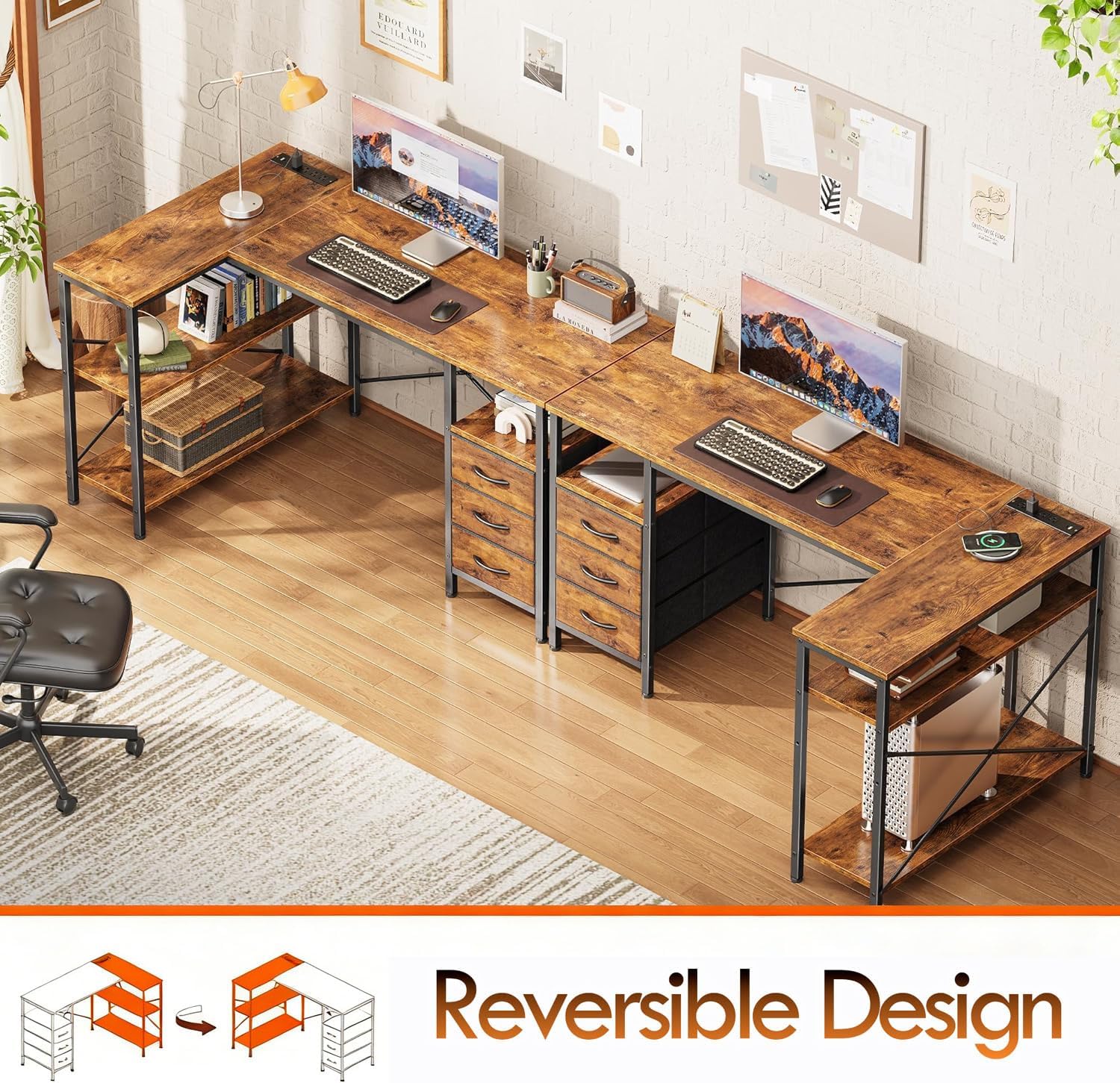 【Space-Saving L-Shaped Gaming & Office Desk】This versatile L-shaped desk maximizes space efficiency with its intelligent design. Customize your layout with reversible shelves and drawers that install on either side of the L-shaped desk. Fits seamlessly into any room—ideal for compact apartments, home offices, or bedrooms.