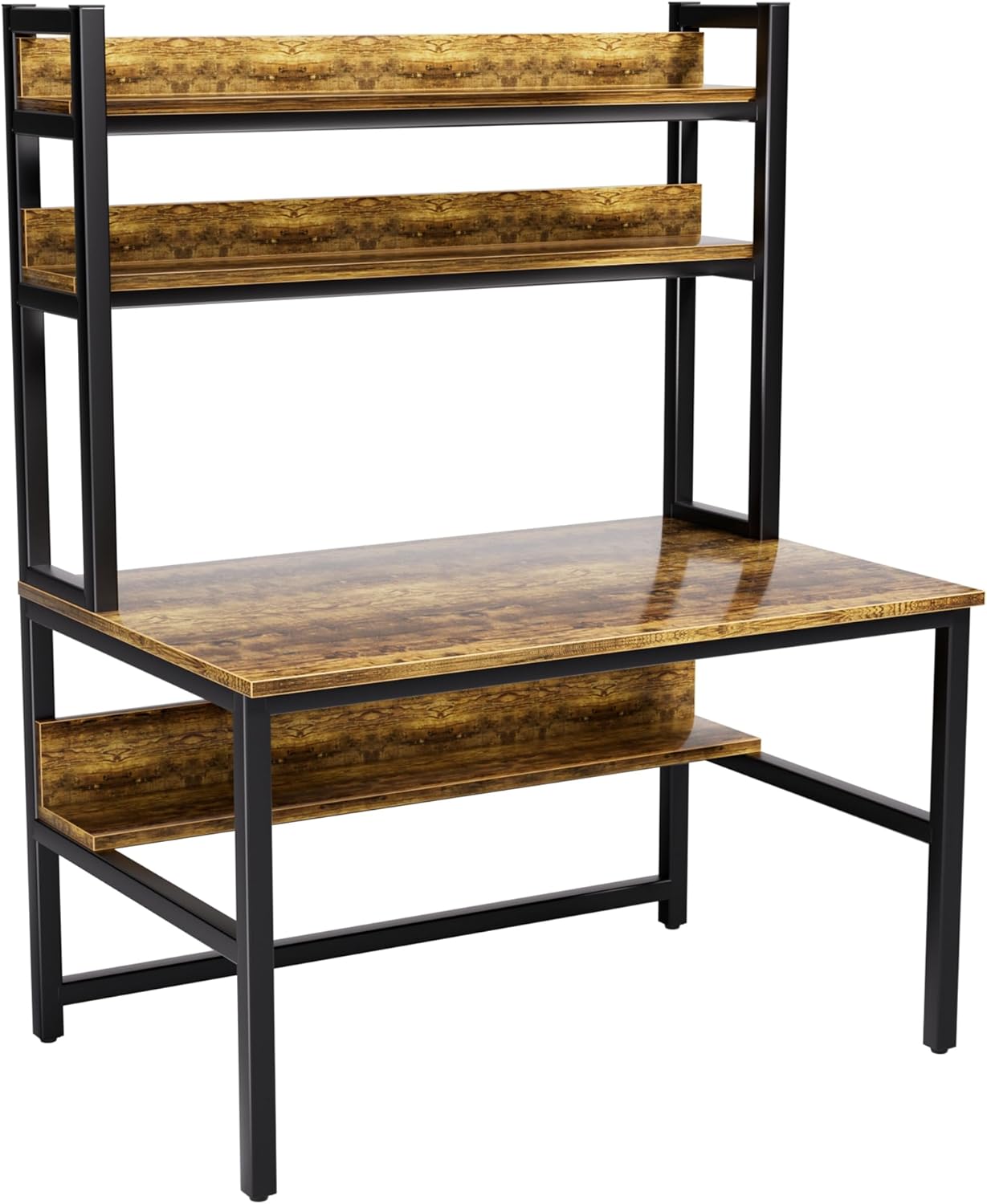 【Space Saving – Work and Storage in One Table】Designed for compact spaces, this desk combines both workspace and storage in one, allowing you to maximize floor space. The upper storage rack and under-desk bookshelf provide extra room for documents, devices, or personal items, making it ideal for home offices or study rooms.
