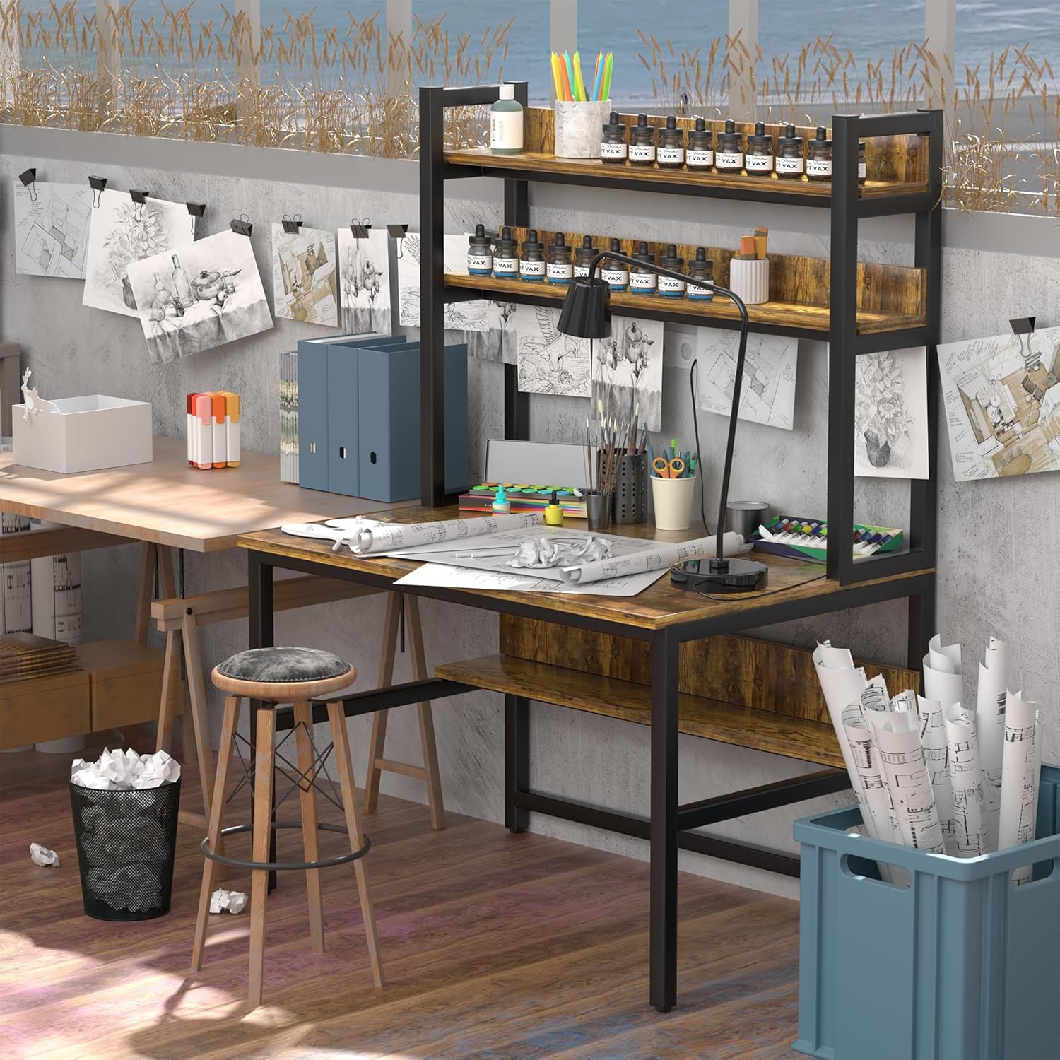 【Large Storage Capacity – 3 Storage Shelves of 47″W*6″D】This computer desk offers a substantial amount of storage with its three spacious shelves measuring 47 inches in width and 6 inches in depth. The open hutch and bookshelves provide ample space for organizing books, office supplies, plants, and decor, keeping everything within easy reach while enhancing your productivity.