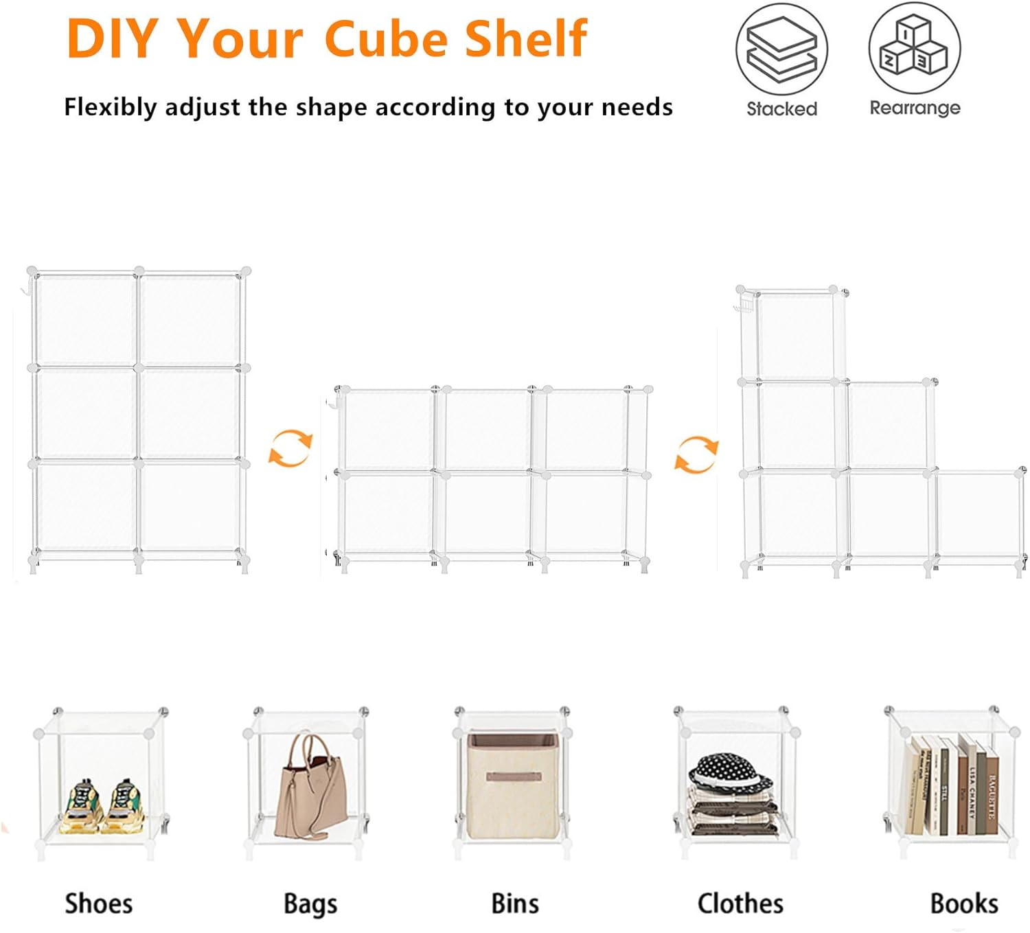 Multi-use Storage: 6 cube closet Organizer storage shelf provide adequate space to organize and free up closet space, you can configure them to fit in your closet, bedroom, kids room, office; works well to organize clothes, toys, books, bins, bag, shoes, craftwork, yarn, pillows. Great way to keep things organized