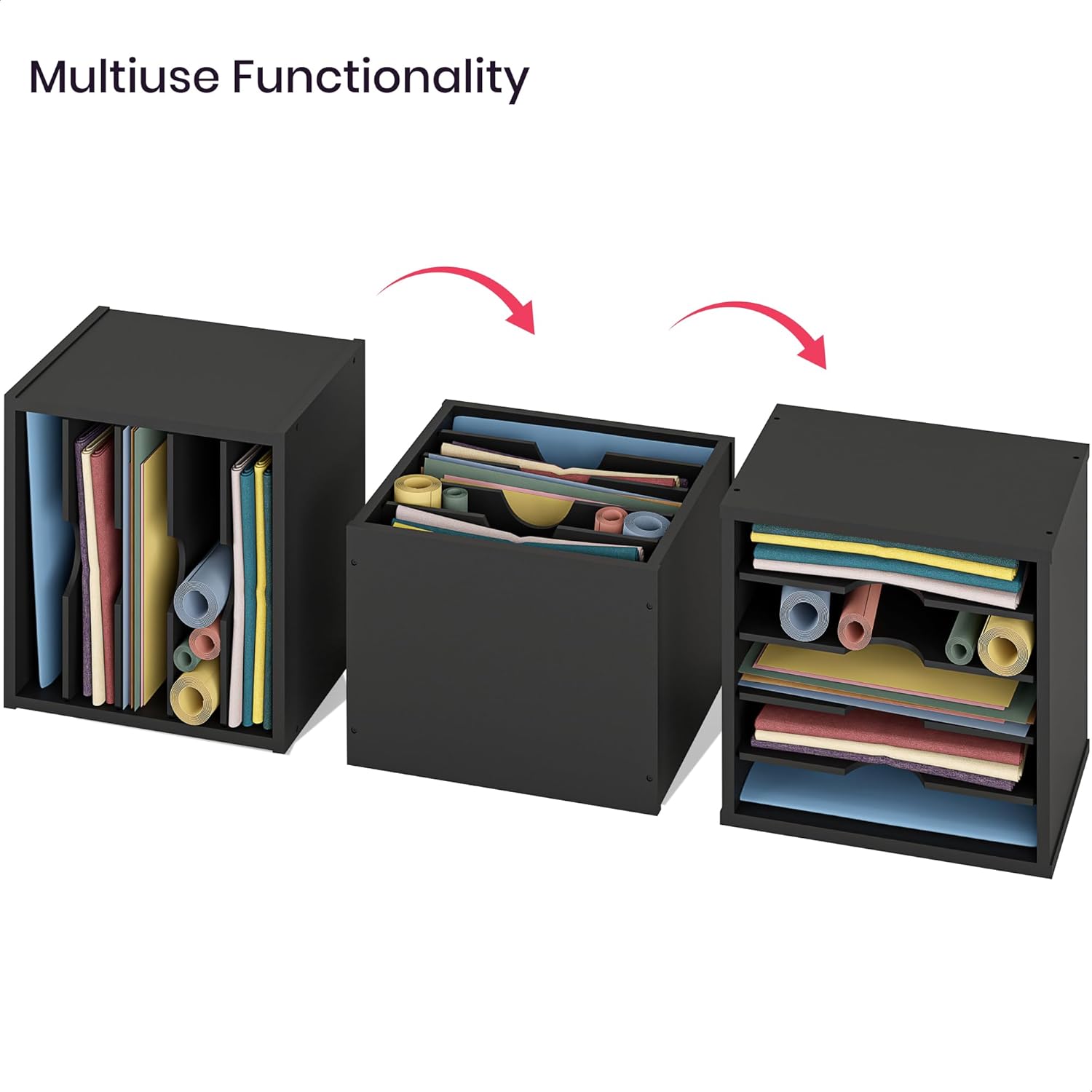 MULTI-FUNCTIONAL: This classroom paper organizer is stackable with 3-way functional layout as needed: horizontal for standard documents, vertical for books or upright as a tub file bin