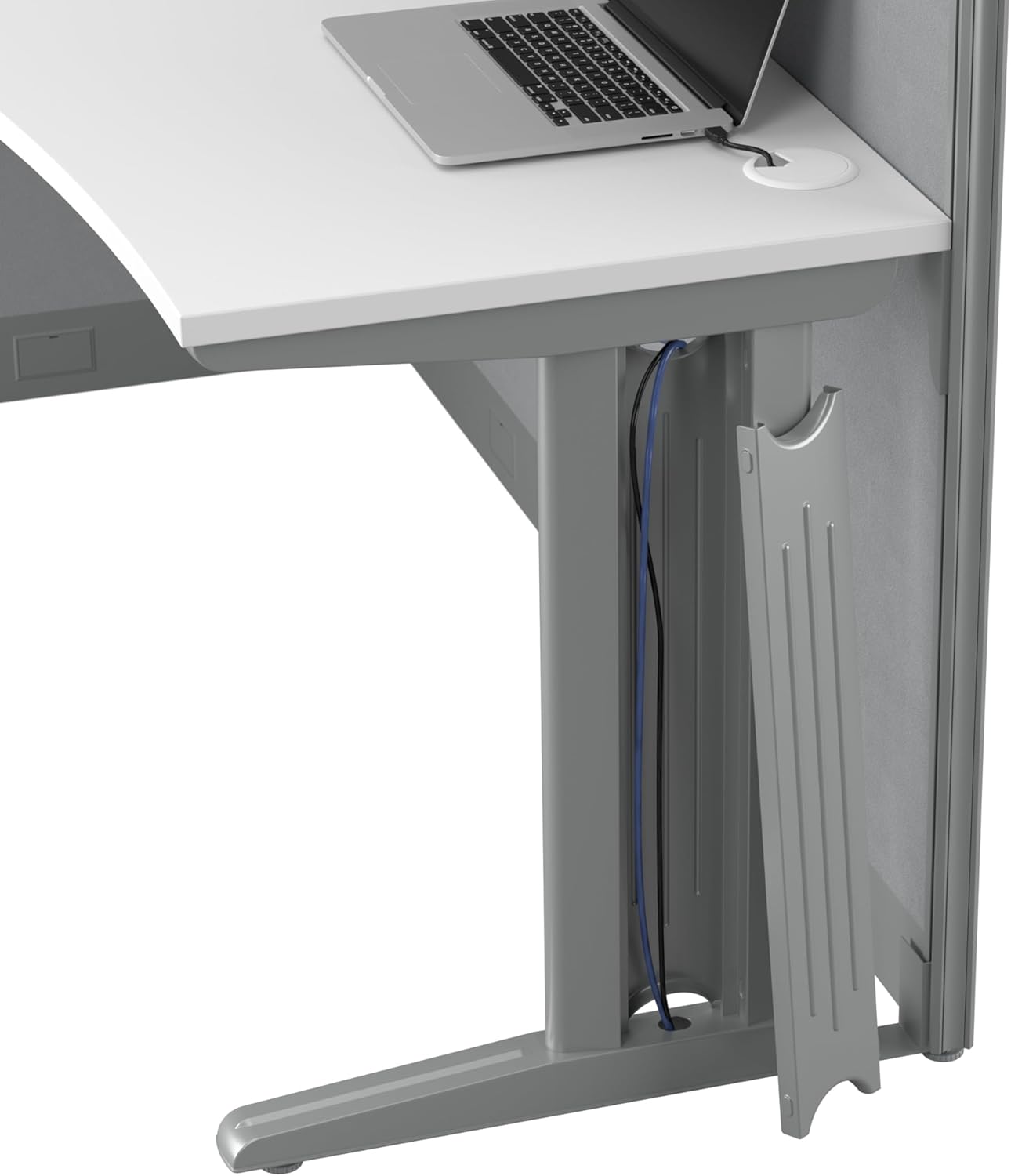 ELIMINATE DISTRACTIONS: Each L shaped computer desk has a tall 63-inch panel for privacy and focus as well as a smaller 48-inch panel for easy communication. The fabric-covered privacy panels can be installed on either side for a custom office layout.