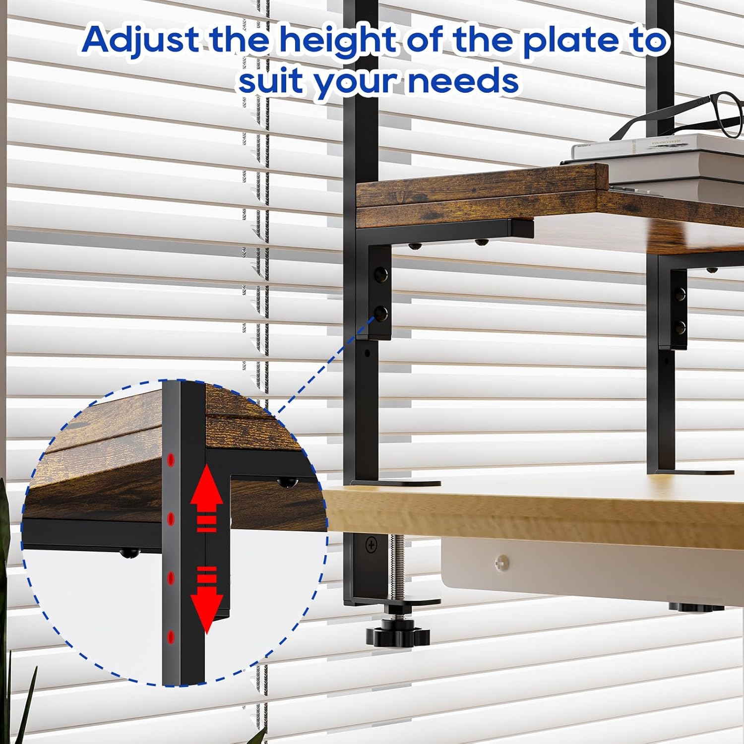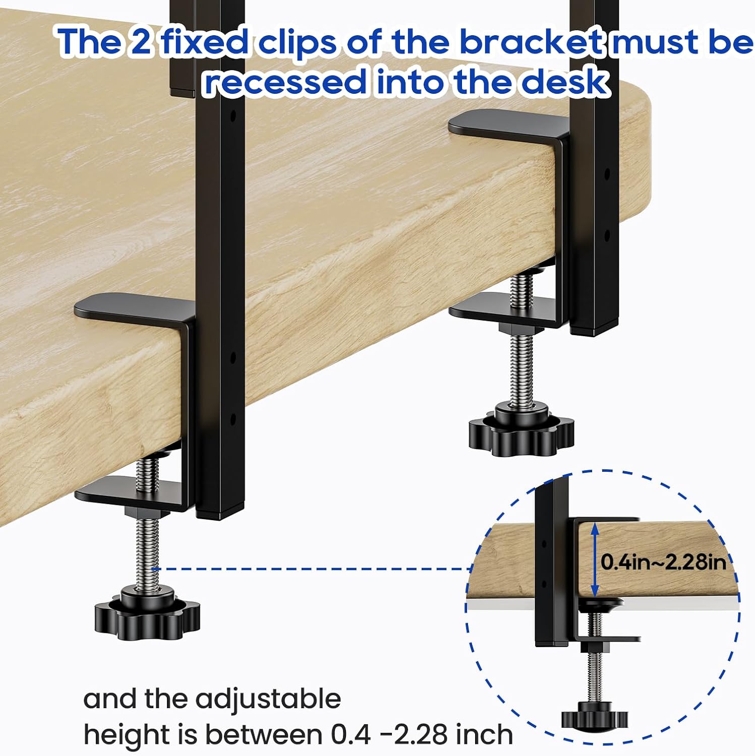 This shelf features a C-clamp design, suitable for desktops with a thickness between 0.4″ and 2.16″ (approx. 1–5.5 cm) Measure your desk first for best fit.
