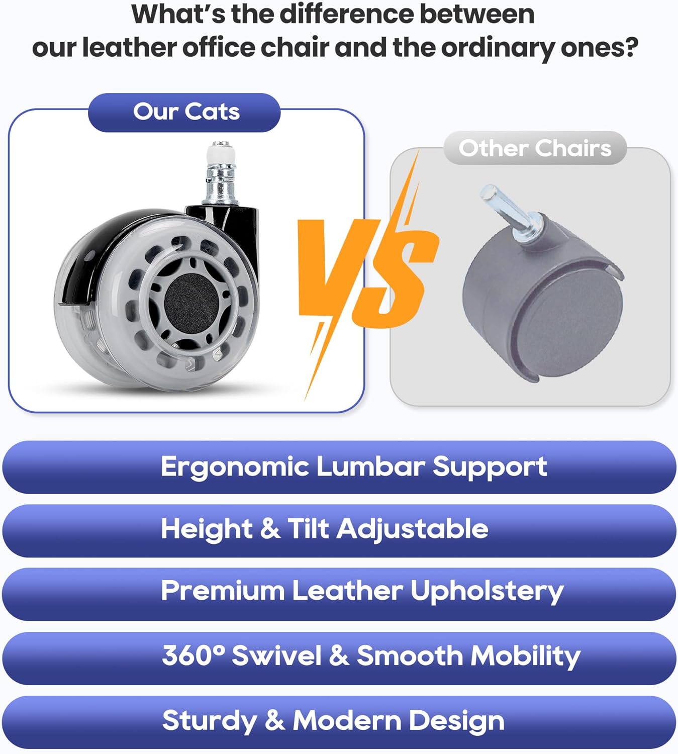 🎼 ULTRA-COMFORTABLE EXECUTIVE OFFICE CHAIR BIG & TALL- Designed with contoured backrest, integrated headrest, and padded armrest, this high back office chair gently embraces your body and reduces your back pain. Paired with thick padded cushion which provides optimal support and encourages good posture, our big and tall leather executive computer chair will be your perfect companion during your work time.