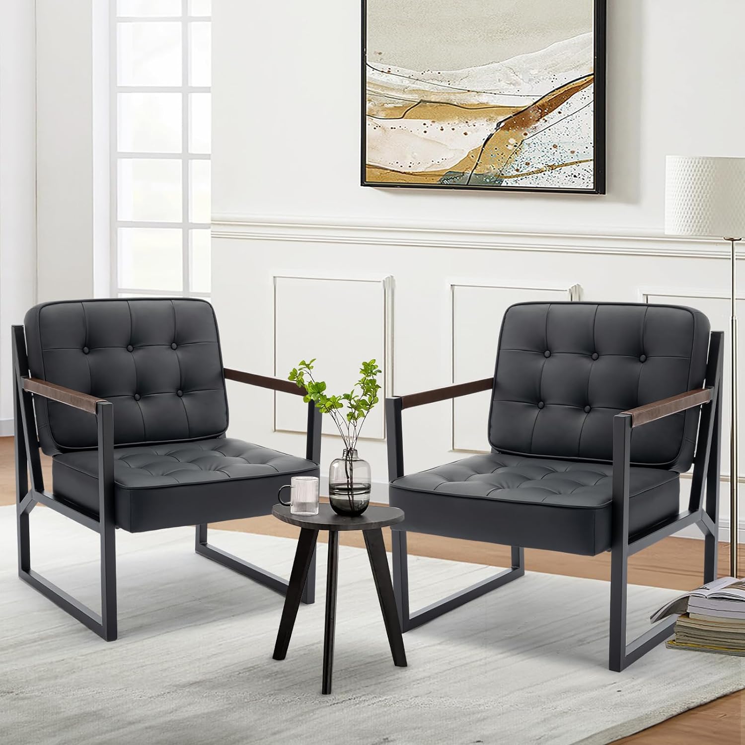 【Mid Century Modern Accent Chair】The accent chair’s timeless and elegant design will never go out of style for your living room. The armchair’s high-quality leather upholstery is not only luxurious but also breathable, ensuring that you stay cool and comfortable while sitting. The material is soft to the touch and feels pleasant against your skin. It will instantly elevate the look of your space and impress guests with its stylish appearance in any living room or lounge area.