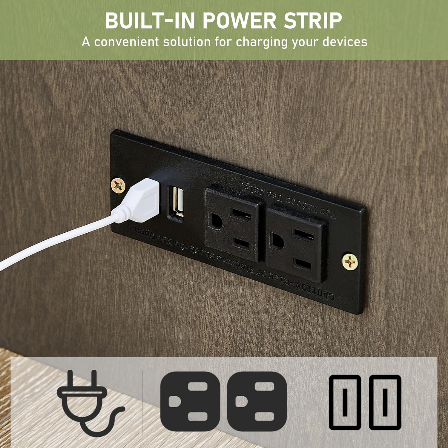 This computer table desk is equipped with a built-in power station, which has 2 outlets, 1 USB port, and 1 Type-C port, and can charge up to 4 devices simultaneously