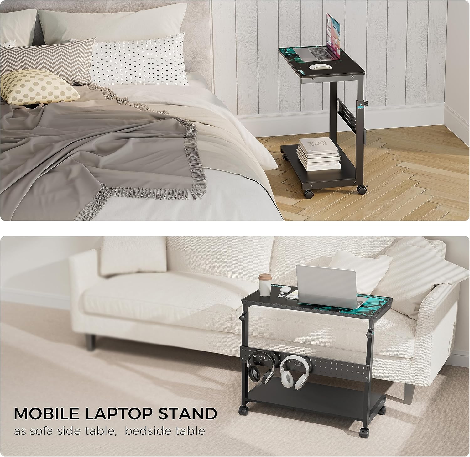 Multifunctional Design: The computer tower cart features an efficient 2-tier design, wider and more stable. The bottom shelf stores the PC tower while the top shelf holds printers, plants, documents, and magazines. The Pegboard on the back organizes office supplies such as power strips, etc. The mousepad is included, this pc tower stand can be used for mouse operation & comfortable arm rest. The computer cart can also be used as a mobile laptop stand or a rolling computer desk that allows you to settle into any place for work, like a bed or sofa, ready to set up