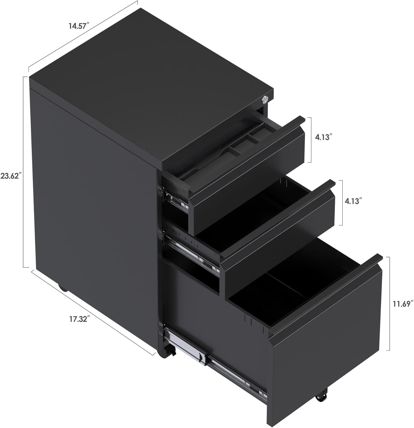 Anti-Tilt Design – 3 drawers locking file cabinet is an anti-tilt structure, which means when you want open one drawer, the rest drawers must be closed completely. Each time only open one drawer to ensure that the cabinet remains stable regardless of the weight of the items that are stored inside.