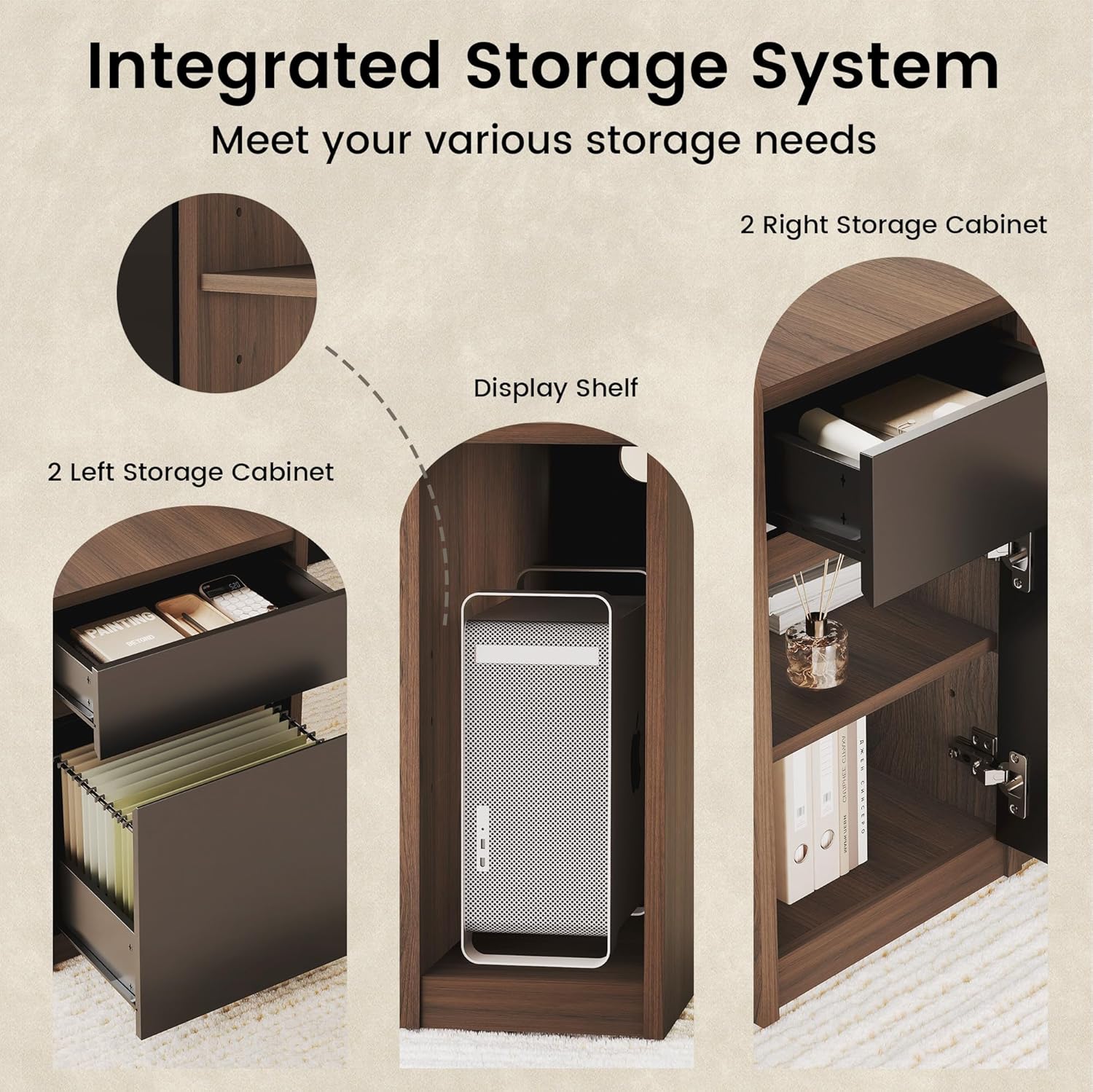 All Round Storage: Desk includes file cabinet; storage cabinets and open shelves for cables; documents and essentials; 71 inch narrow bookcase with double sided multi tier shelves; suitable for books; decor and plants; three hidden handle drawers; reduces clutter and improves focused productivity