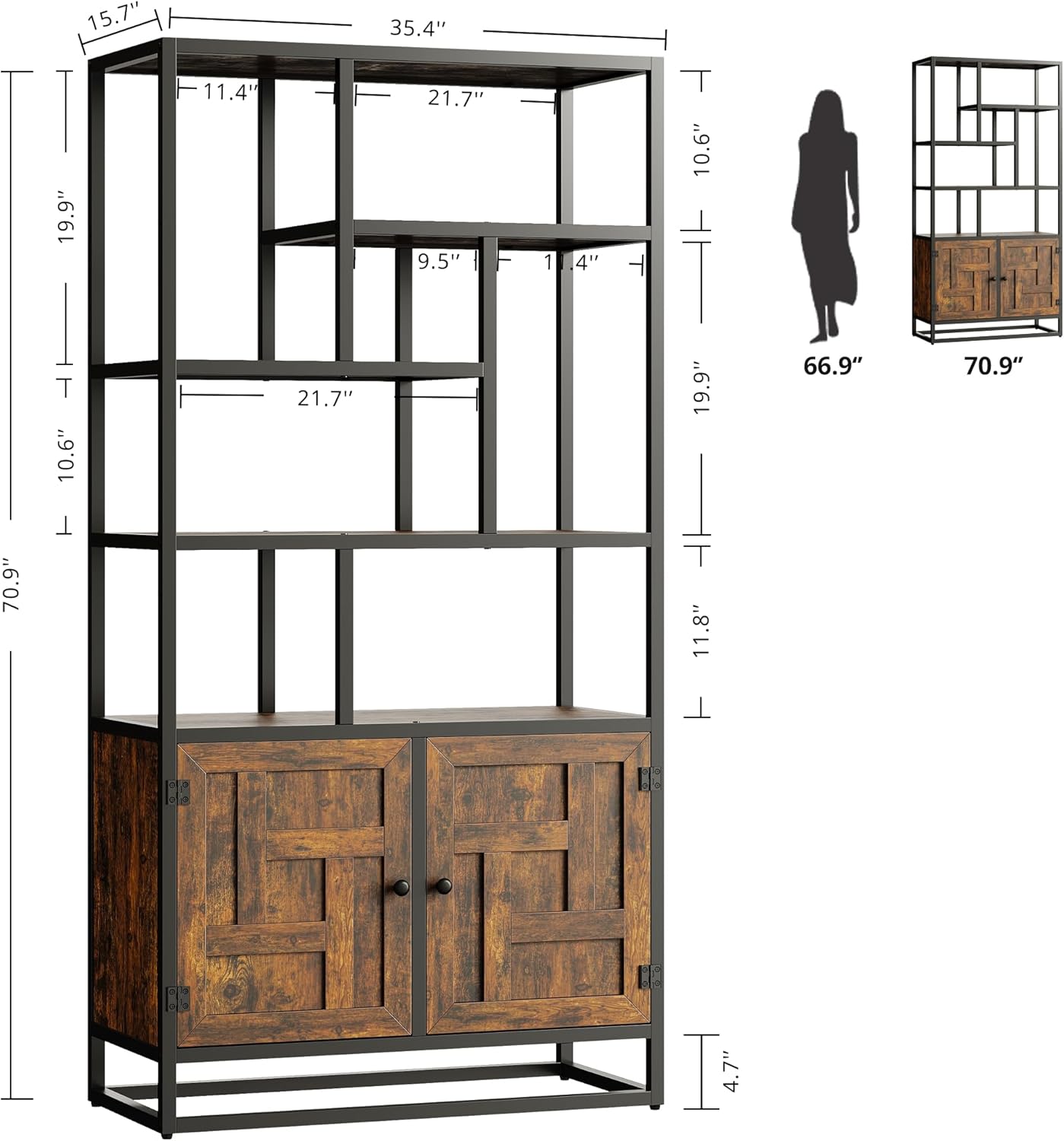 Large Storage Space in 15.7″ Depth: This 6-tier bookshelves with storage, measuring 35.4″W x 15.7″ D x 70.9″H, features 2 doors and storage cabinet, offering ample storage space to meet your diverse needs.