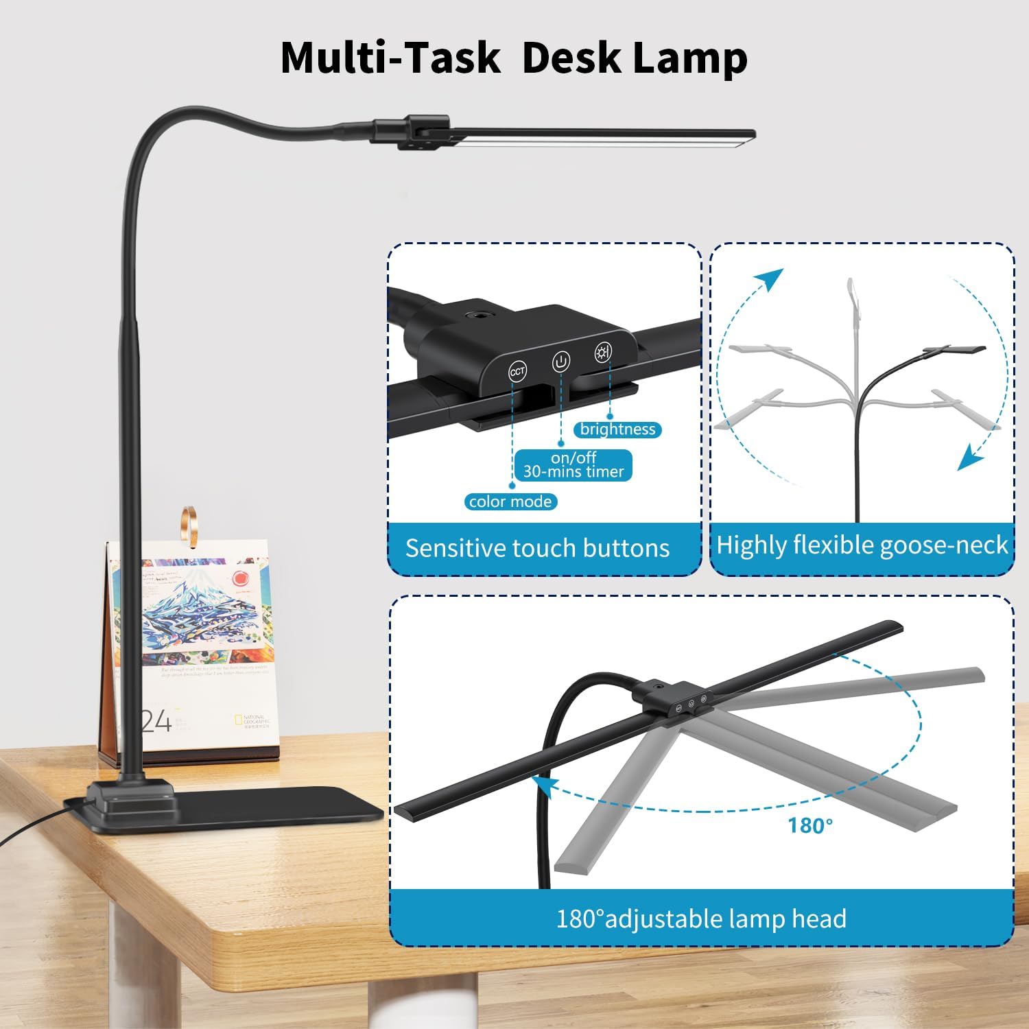 【Double Head Desk Lamps】It has ultra wide-spanning 27.8-inche across when unfold that achieves the full desk coverage evenly, 180°adjustable LED lamp bars can be side lamp when the lamp heads arranged together for bright, targeted desk lighting.【EASY TO SET UP following the THIRD image with assemble steps】