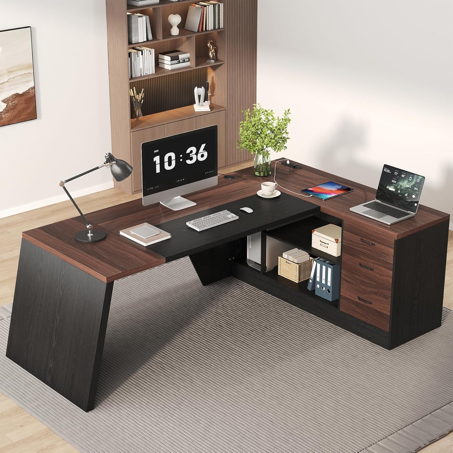 L-Shaped 78-Inch Executive Design: Spacious corner workstation fits dual monitors. Optimizes room layout for ergonomic workflow
