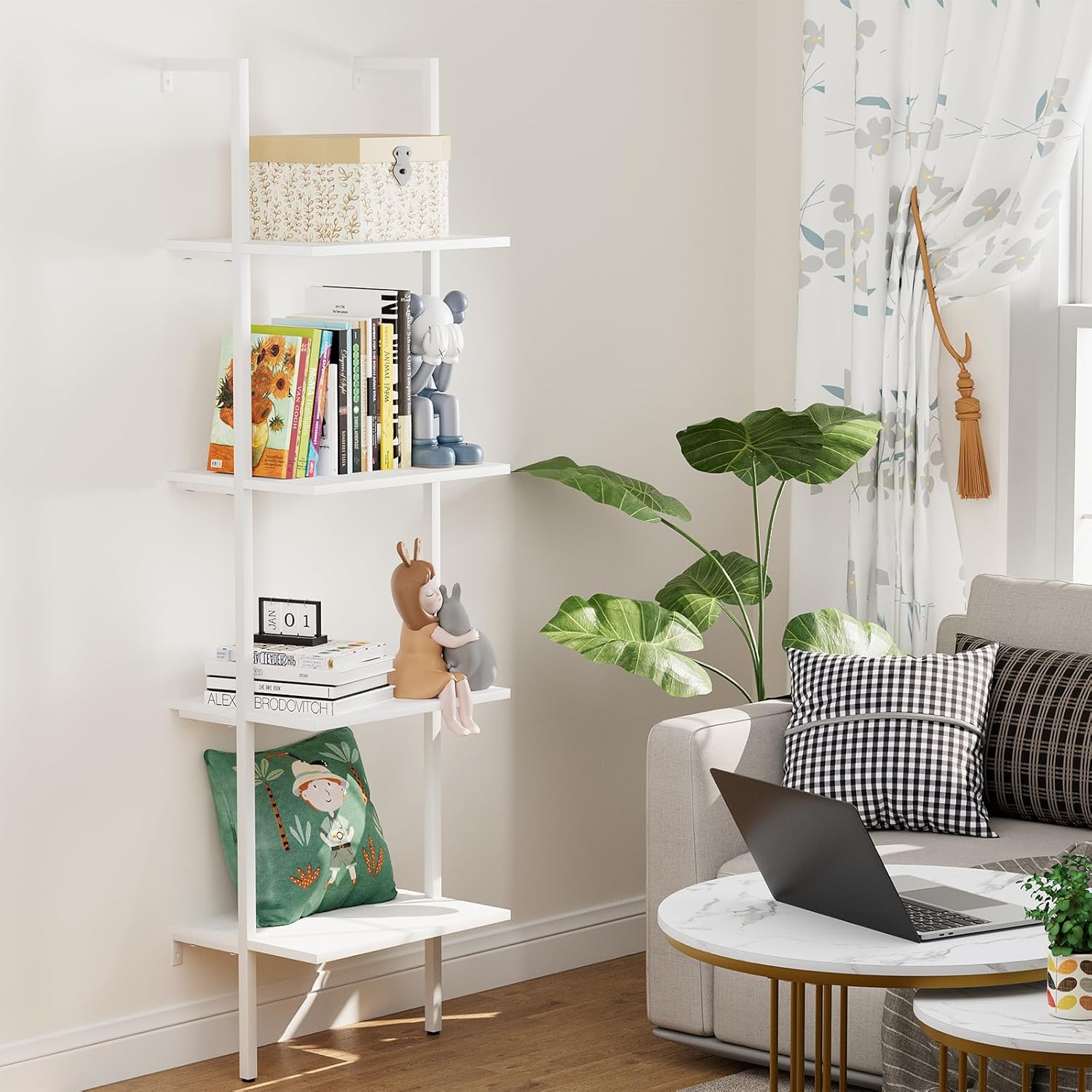 ✔HEAVY DUTY: The ladder bookcase consists of sturdy metal frames and durable MDF board, Bearing weight Up to 25 lbs load capacity per shelf, a large size of the ladder shelf is perfect for the space you needed.