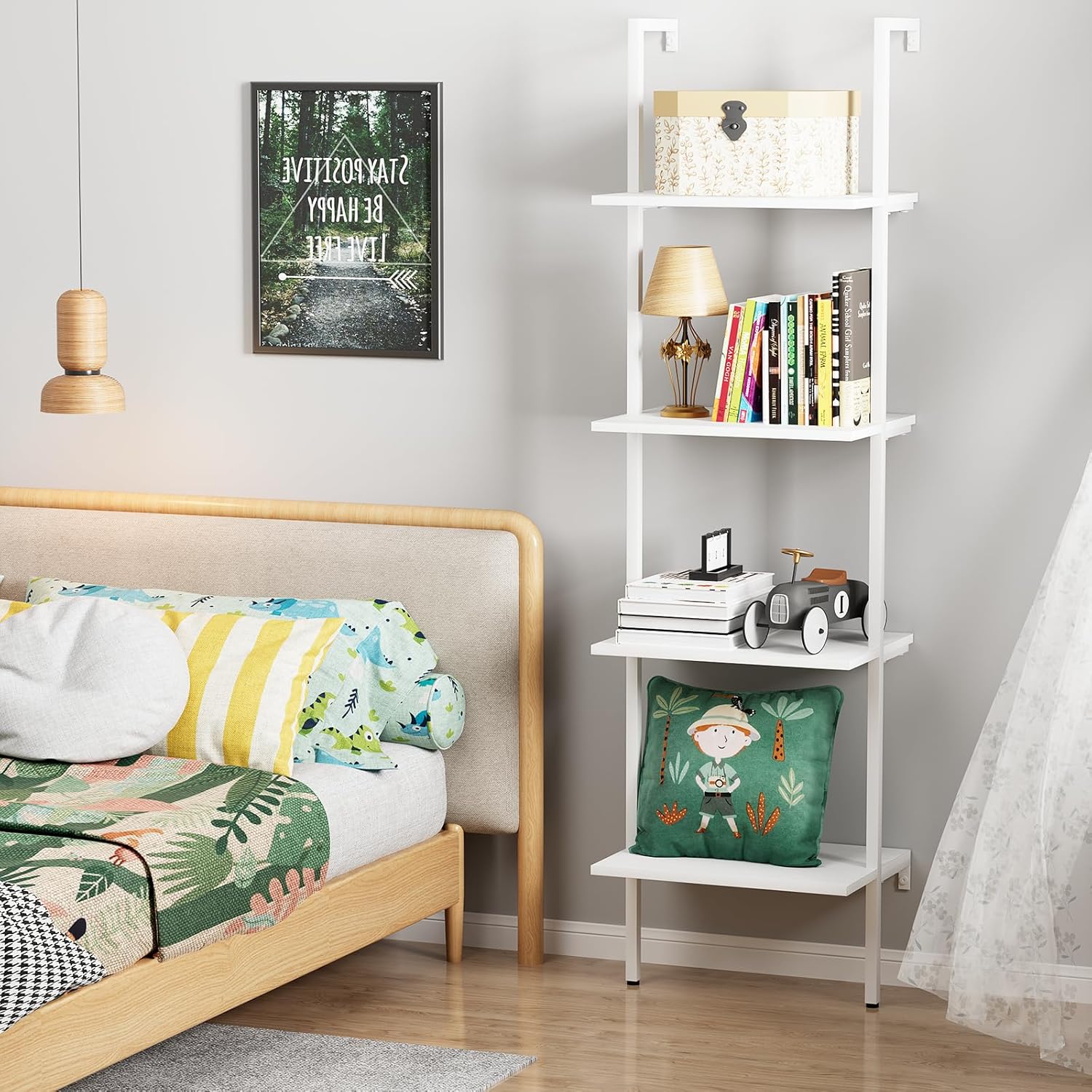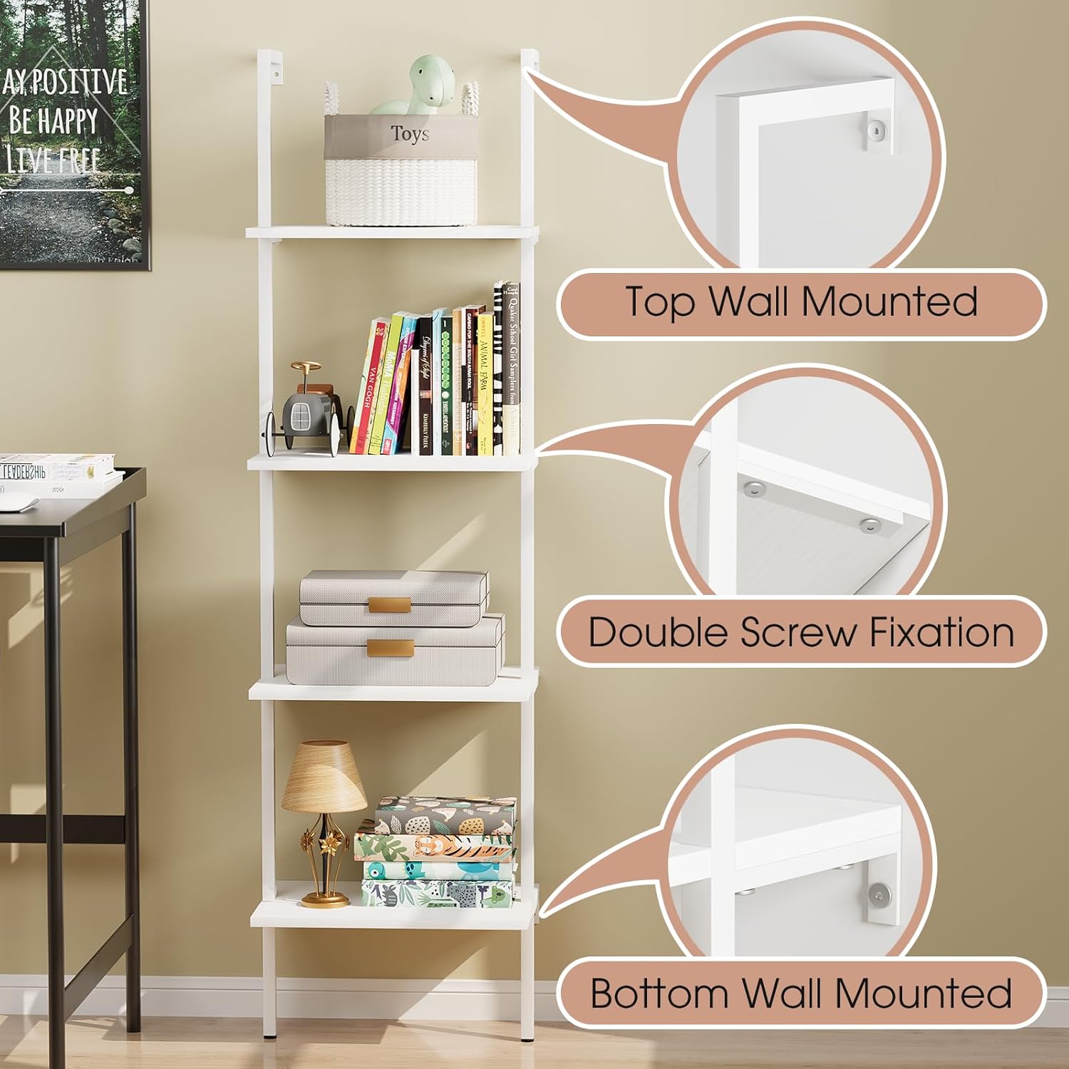 ✔DURABILITY & STABILITY: The adjustable leg pads on the bottom of the storage rack ensure that the ground is not scratched. The ladder shelf is well mounted into the wall and you have no fear of it crashing down or falling over.