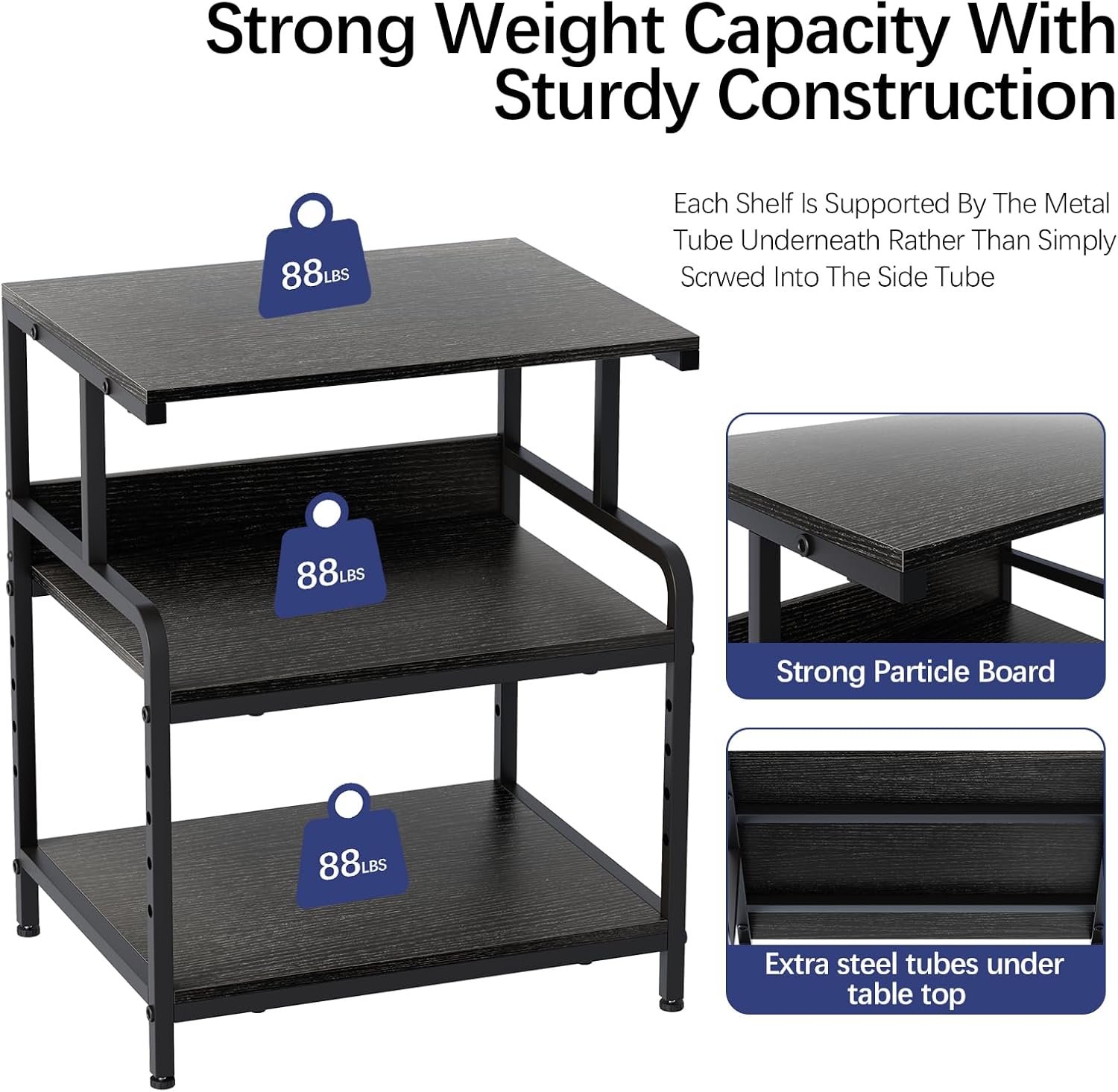 【Easy Assembly】:This well-designed home printer stands is easy to assemble. The package comes with an installation manual and a full set of installation tools, through which you can install it in 20 minutes. Before long, you’ll have the perfect storage shelf!
