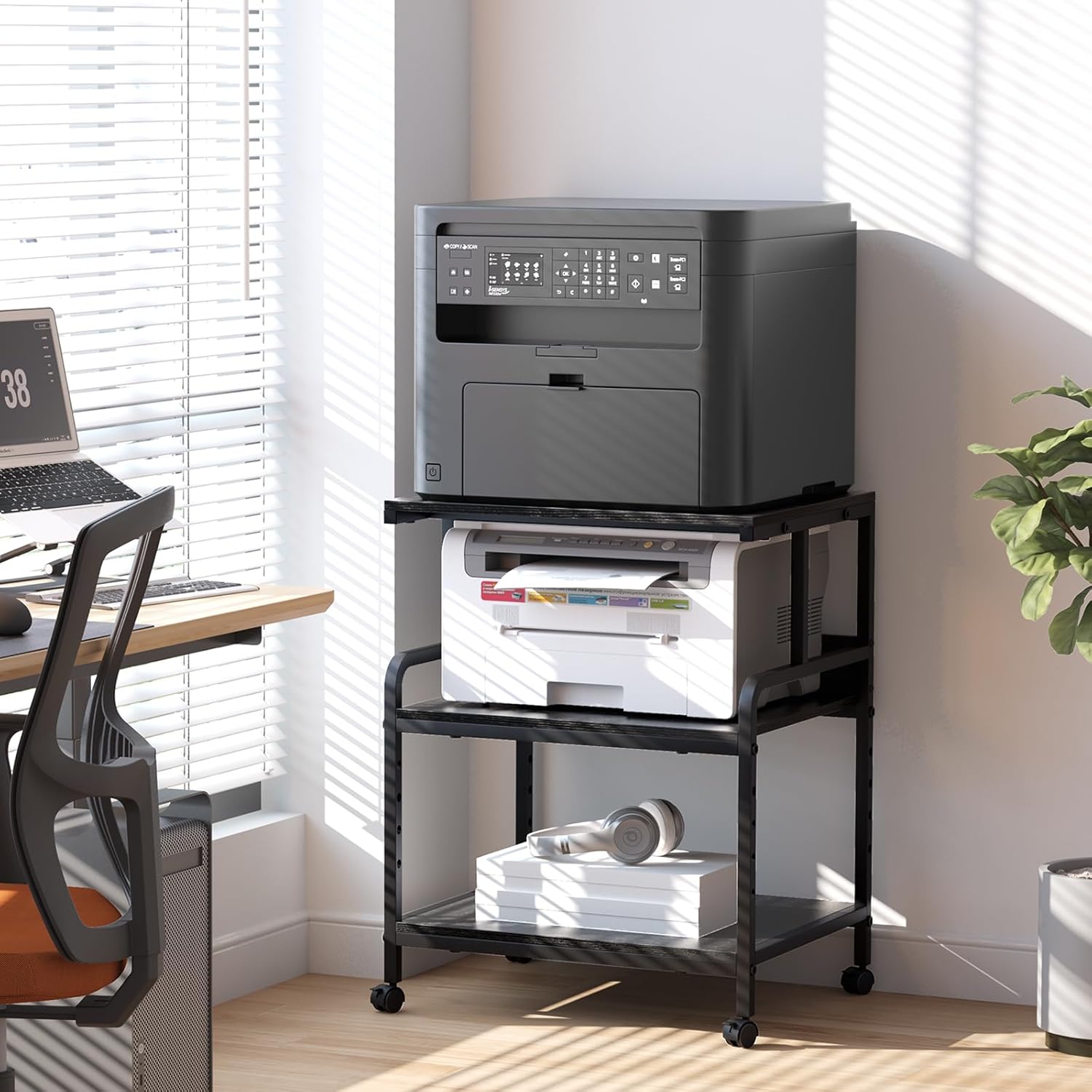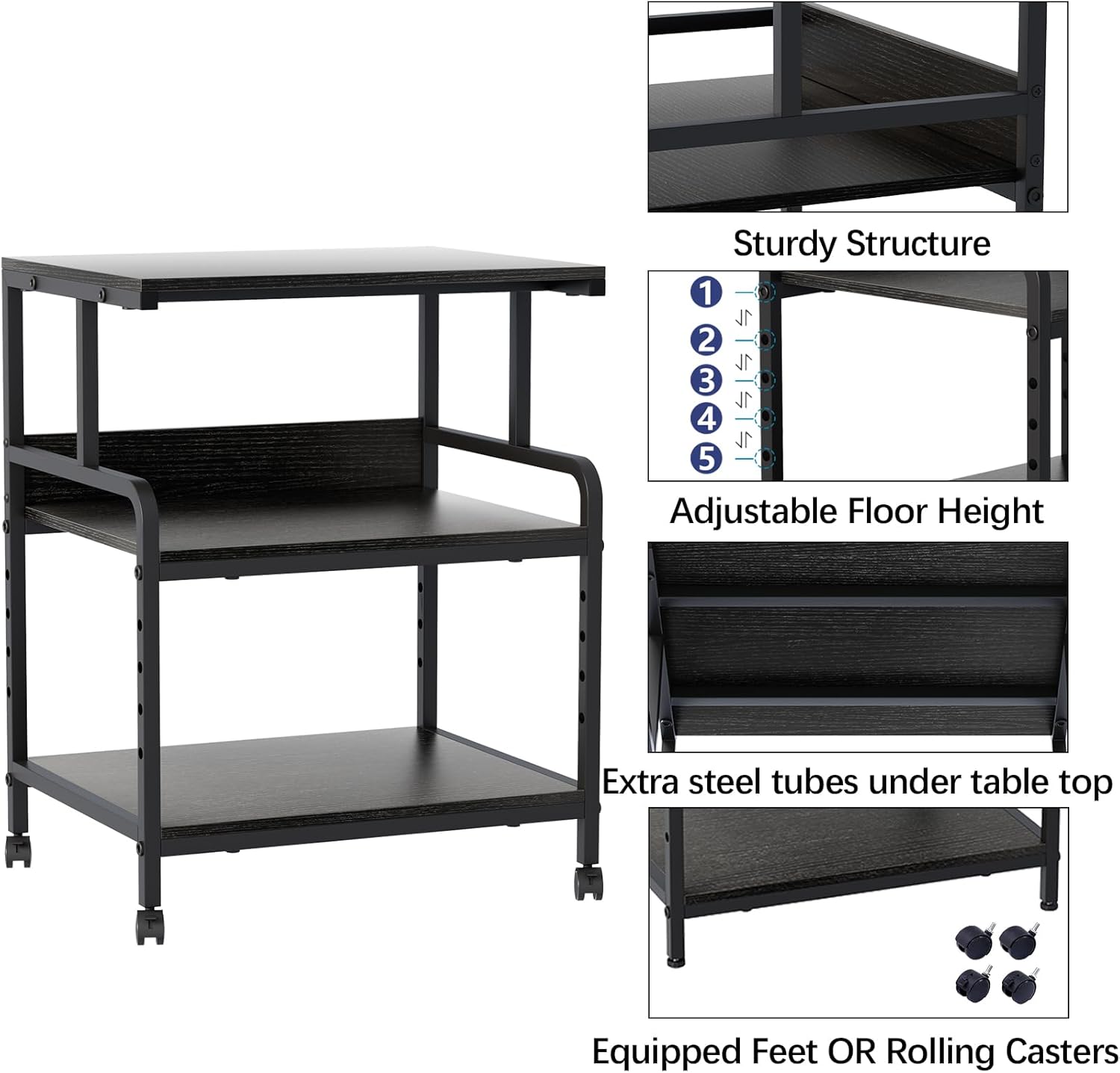 【Adjustable Design & Two Options】:This is a flexible and versatile rolling printer stand. The adjustable layer design greatly improves the space utilization and can be used to place machines or documents of various sizes. And with adjustable feet and rolling casters, you can choose between full stability or mobility.