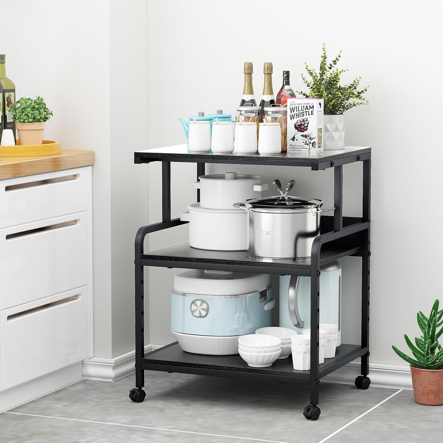 It’s not just a printer stand. It can be a shelf with lots of books; A kitchen cart for a microwave, POTS and pans; A side table for coffee and snacks. More uses are waiting to be discovered.