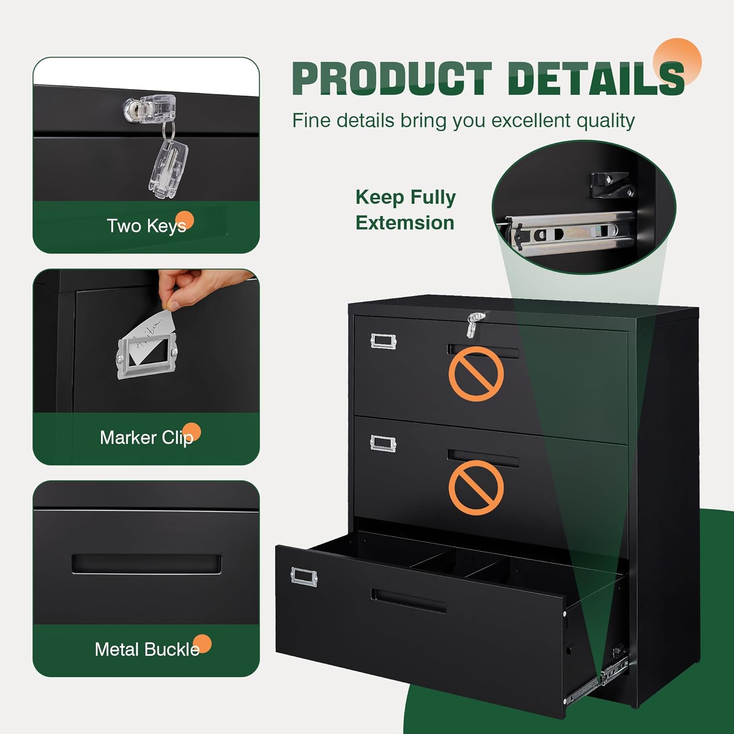 【Unique Design 】Built-in interlock system secures all drawers to make sure safe file, with folding key lock convenient to carry. With all drawers interlocking mechanism design, it will prevent tipping.Ball bearing full suspension drawers that open and close easily and quietly.