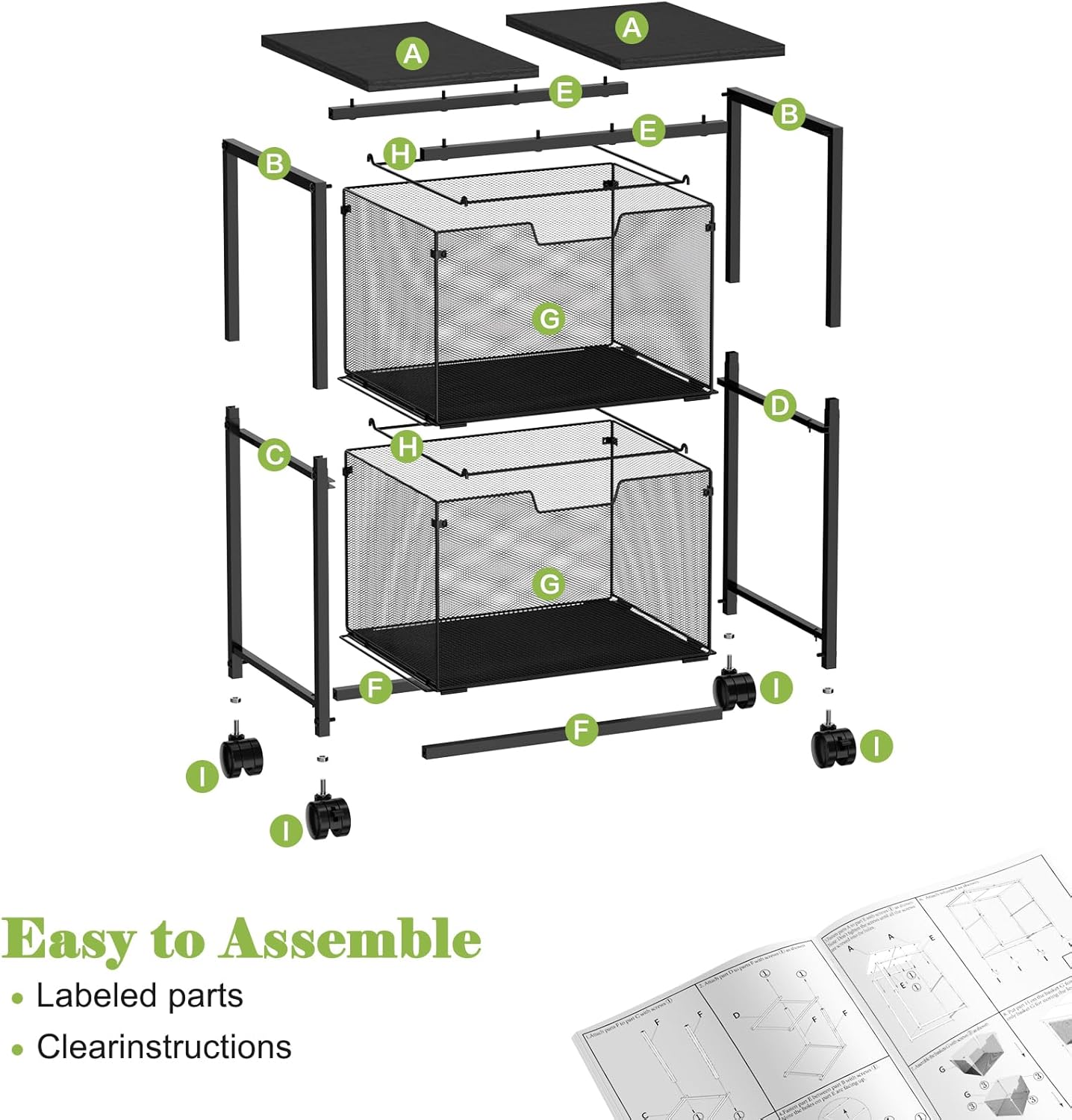 360° Rolling Lockable Wheels: Our file cart features 4 swivel wheels (2 lockable) for smooth mobility and secure stability. Our file storage organizer can be fixed under the desk or moved freely around your home office. The 2 front casters have built-in brakes that also help to keep it in place.