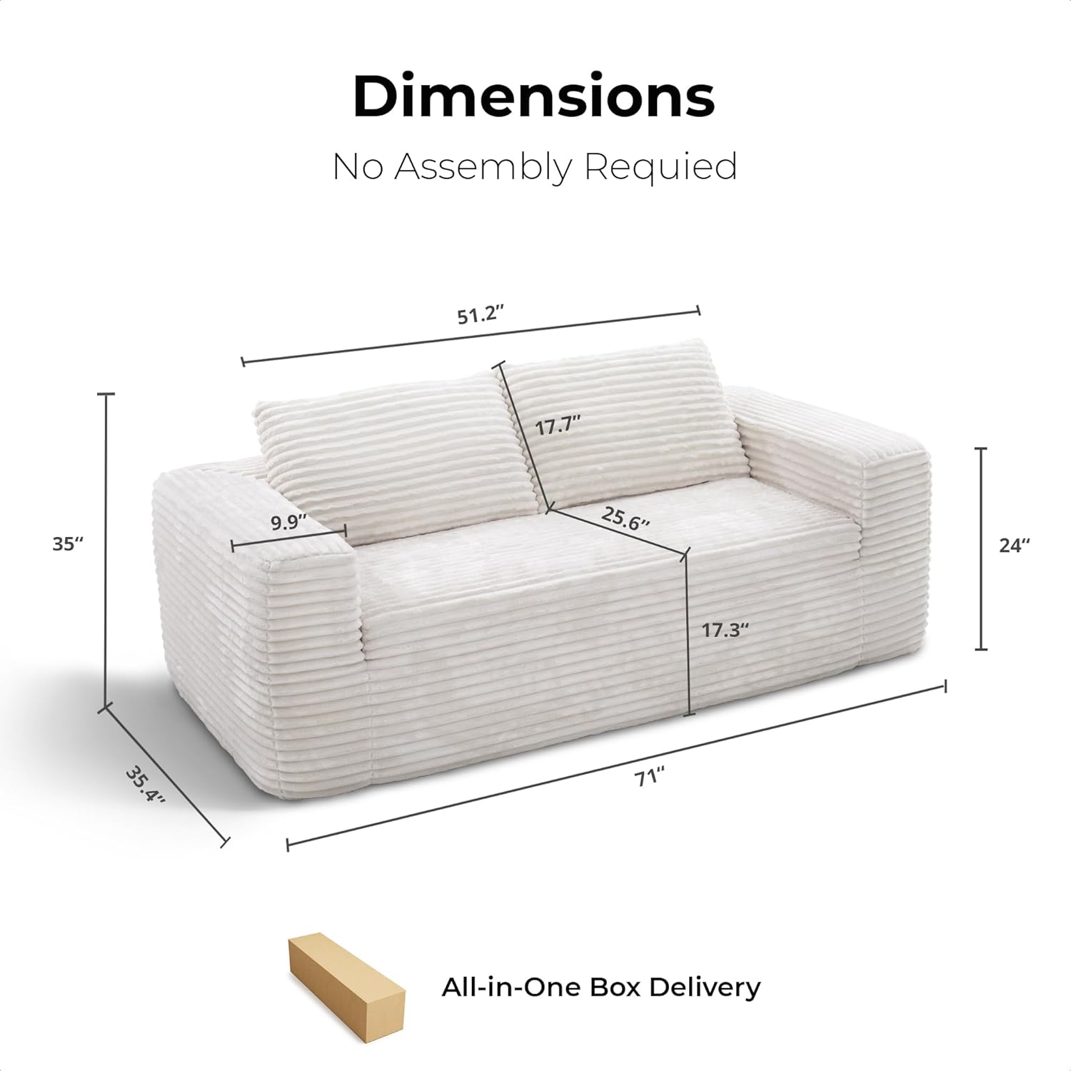 Sofa-in-a-Box Magic for Tight Spaces: This 71-inch loveseat sofa is compressed into a single, easy-to-move box, allowing just two adults to transport and place it effortlessly. Designed for apartments and small spaces, it simplifies delivery and setup — the ideal choice for urban living.