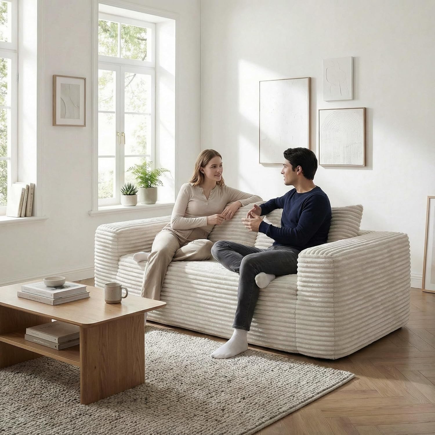 Luxurious Corduroy-Designed for Real Life: Features a velvety-soft, breathable fabric that is skin-friendly and expertly hides minor wear. Engineered to resist daily wear and spills, this sofa keeps its elegant look effortlessly.