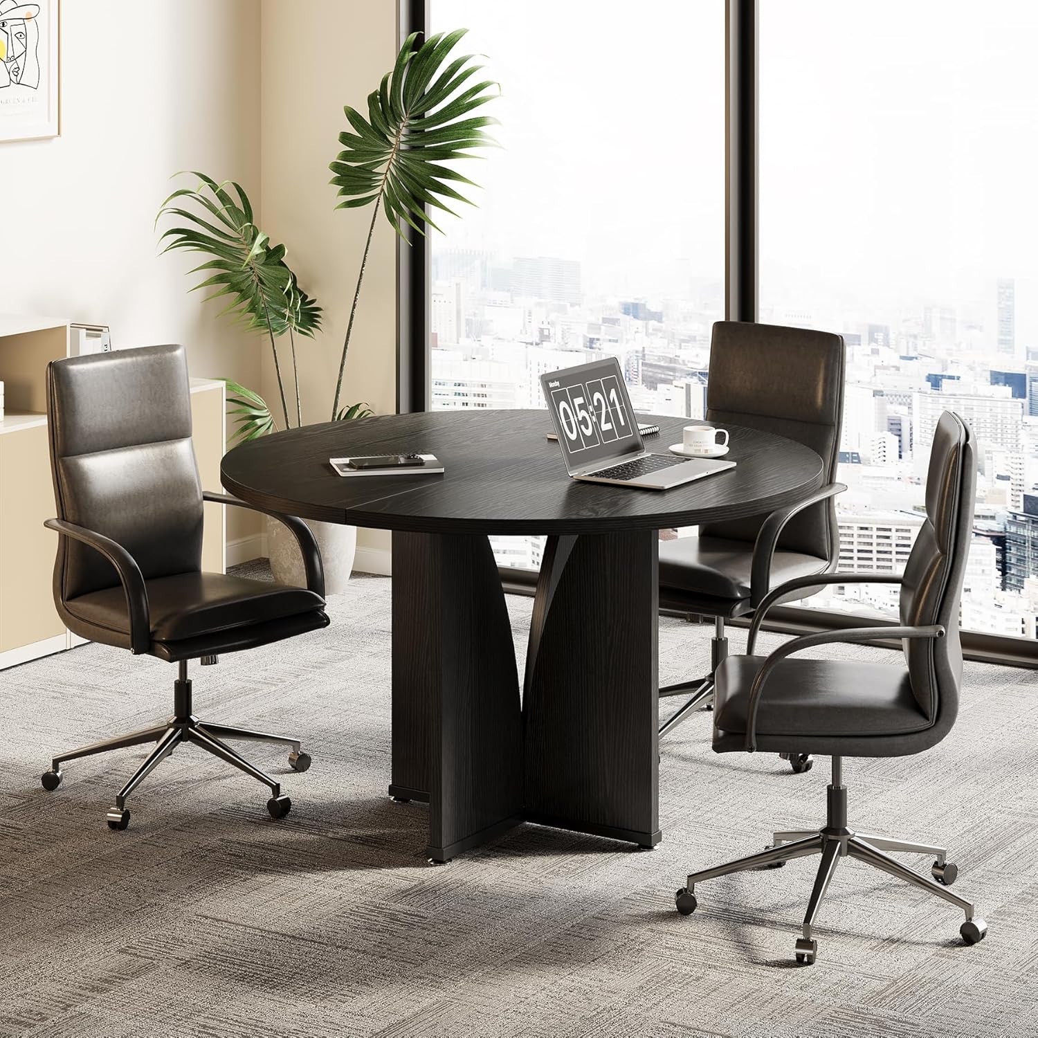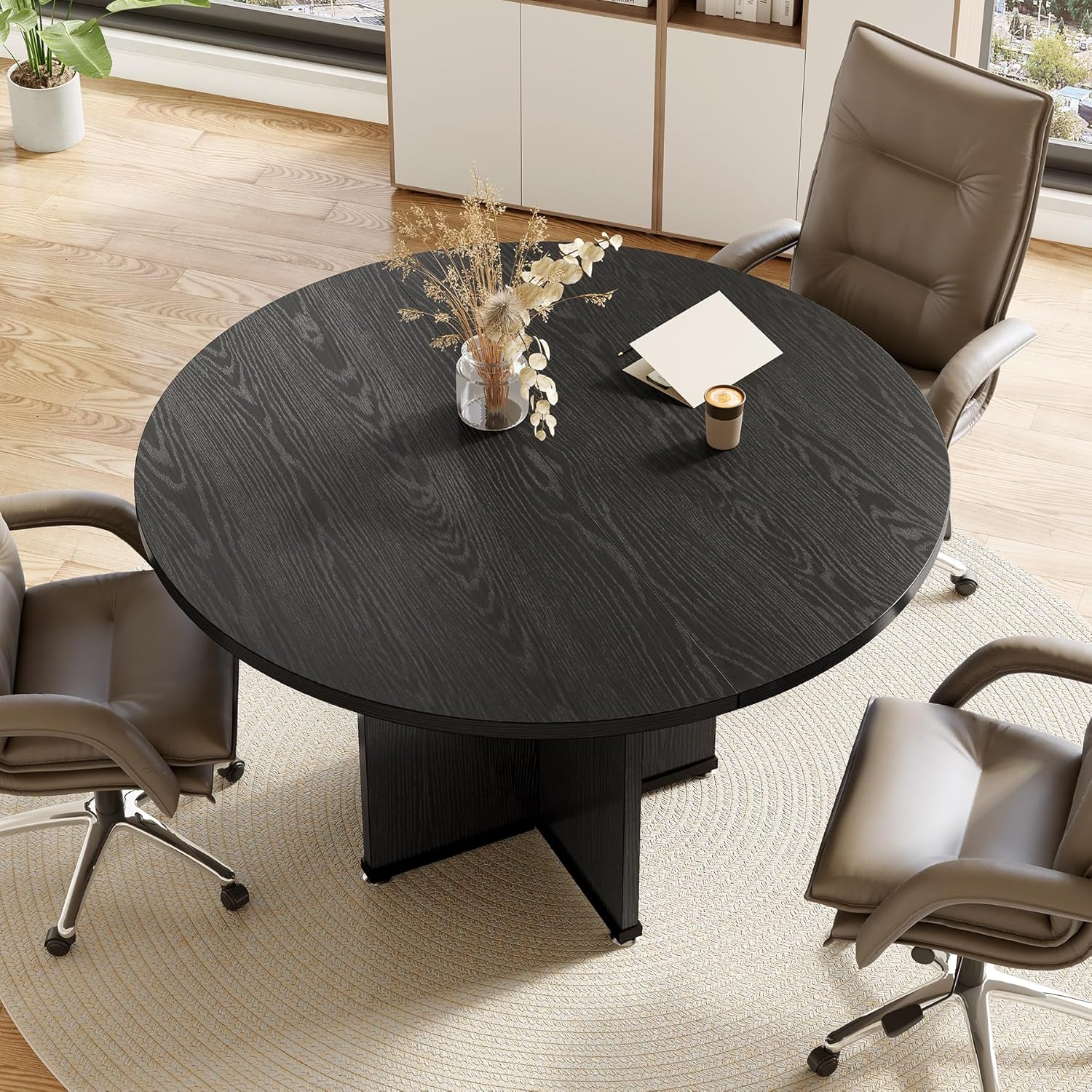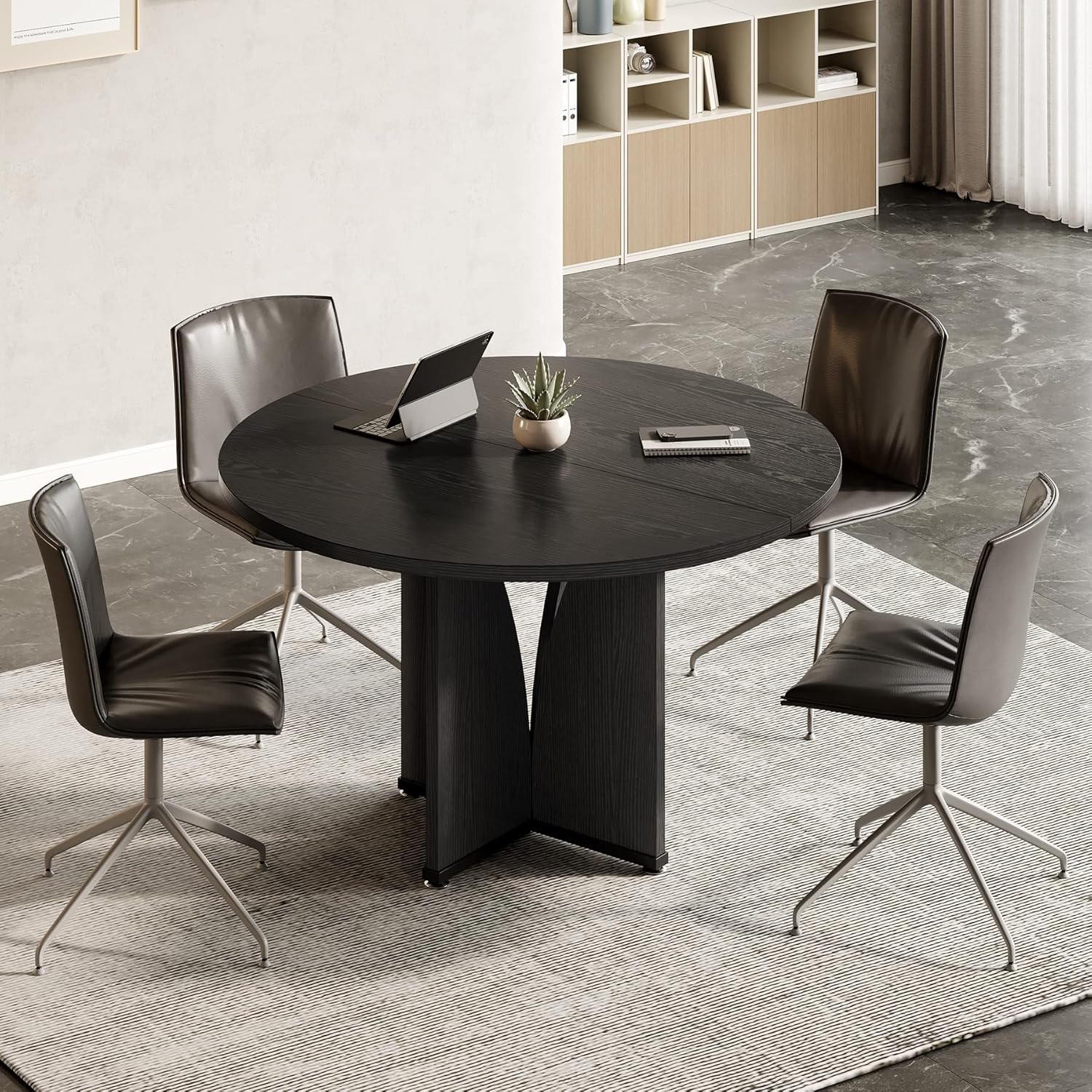 Spacious 39-Inch Round Design: Perfectly sized for four people, this 39-inch round conference table offers ample space for collaborative meetings, making it an ideal choice for small offices or conference rooms
