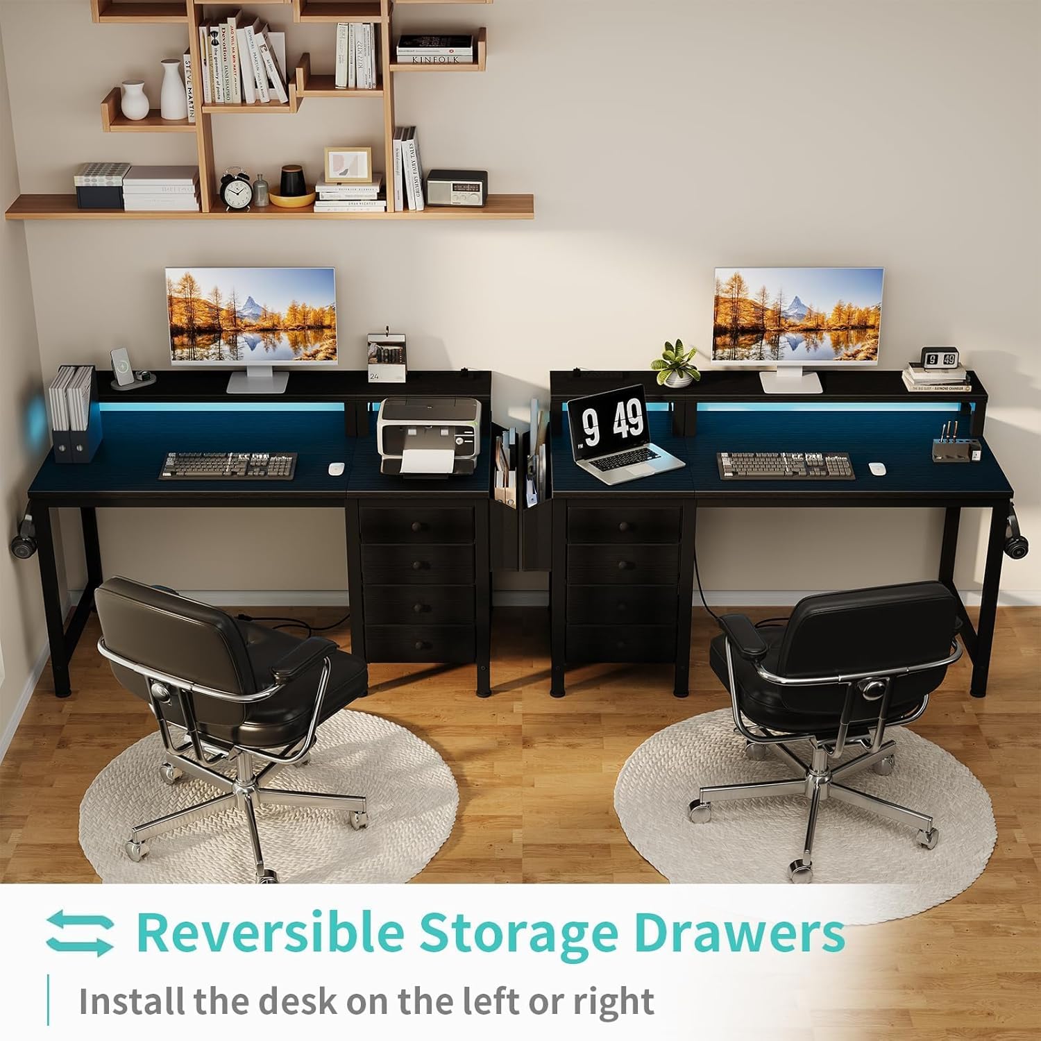 Working Desk with Ample Storage Options: Computer desk with 4 𝙁𝙖𝙗𝙧𝙞𝙘 𝘿𝙧𝙖𝙬𝙚𝙧𝙨, you can try this two installation methods (left or right). It also have a side storage bag and 2 iron hooks, perfect for holding magazines, notebooks, bags or small electronics