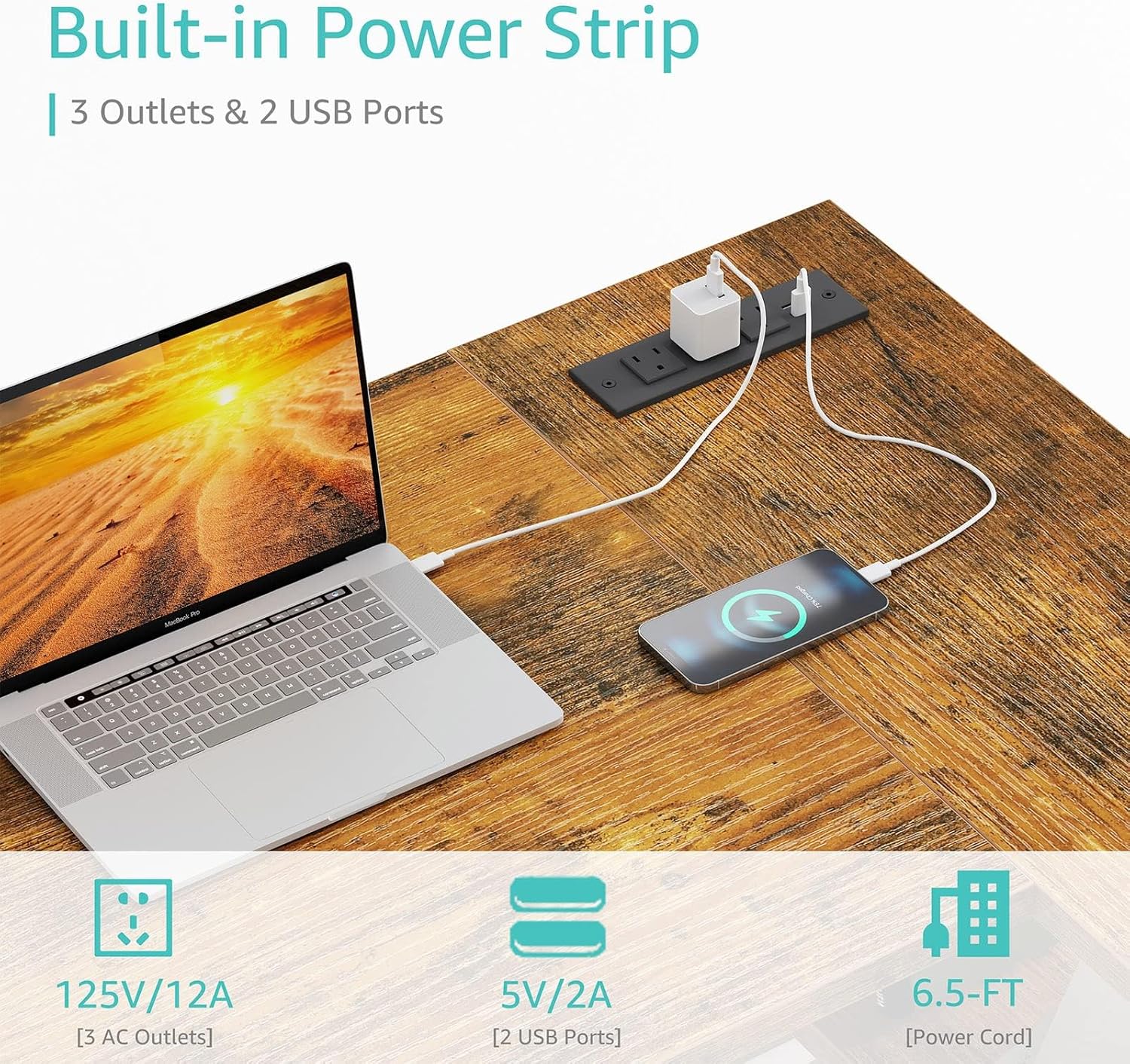 Safety Multifunctional Power Strip: The computer desk includes a built-in power strip with 3 power outlets & 2 USB charging ports for your computer, monitor, gaming gear, pad, phone and other electronic devices. The desk is USPTO Patent Approved.