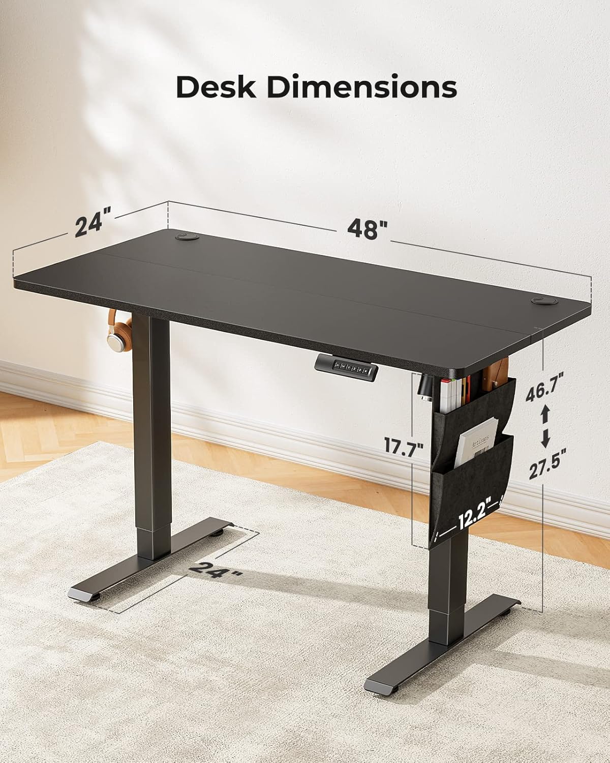 One-touch Adjustment:This stand-up desk easily switches between sitting and standing with one touch and saves up to four custom heights. With a height range of 27.5 to 46.7 inches, it fits various users. It promotes better posture, reduces health risks, and encourages movement during long hours. Quick adjustments improve circulation and reduce fatigue. The user-friendly system simplifies height programming and transitions, enhancing productivity and comfort for work, study, or creative tasks.