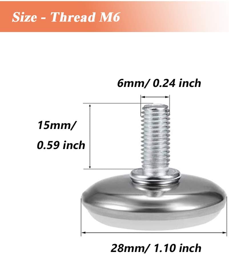 Furniture Leveler Thread Diameter: 6mm; Thread Height: 15mm; Base Diameter: 28mm; Overall Height : 27mm