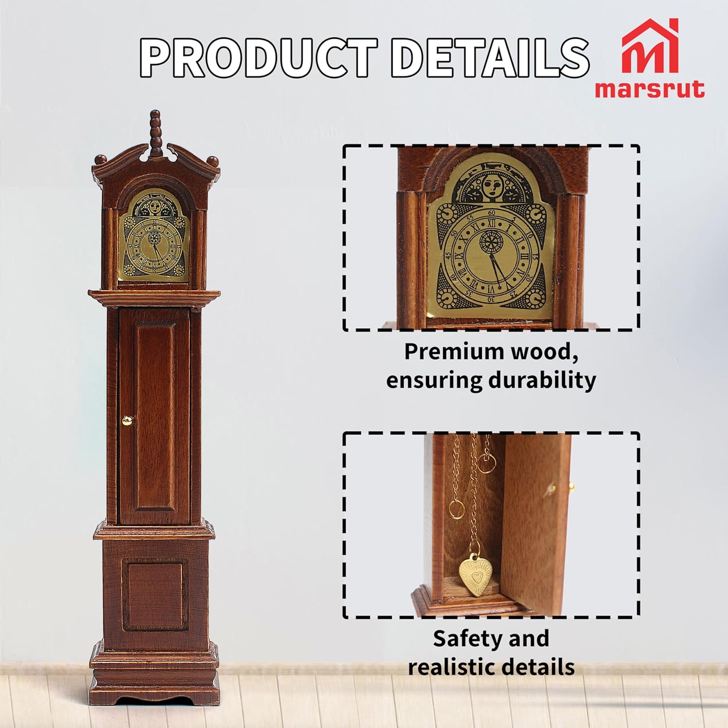 Miniature Dollhouse Grandfather Clock Set, 1:12 Scale Mini Doll House Furniture Accessories, Victorian Decoration for Living Room, Bedroom, Kitchen, Home, Office, Small Wooden Rustic Essential Decor