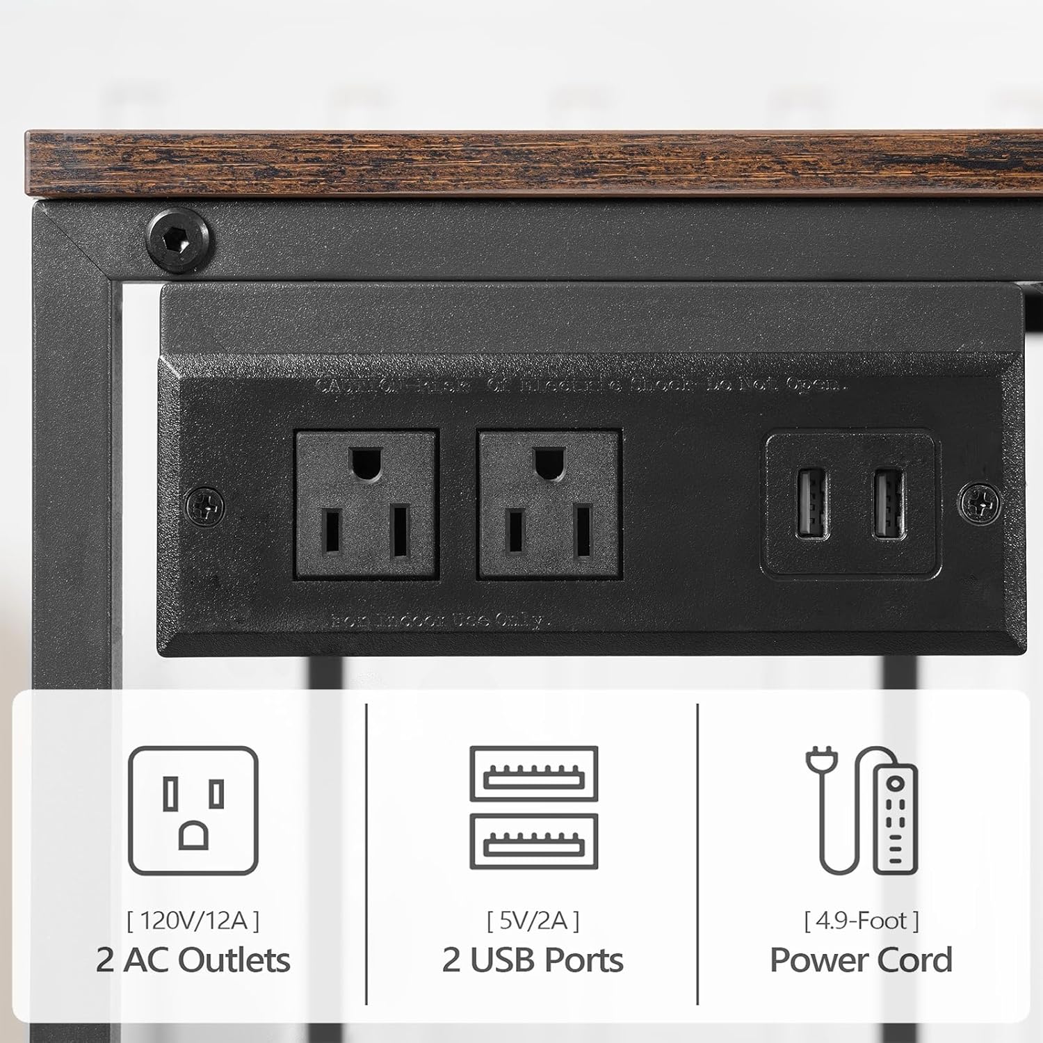 Printer Stand with Charging Station: A practical power strip is designed beneath the top panel, providing 2 standard outlets and 2 USB ports for your printer, household appliances and other devices.