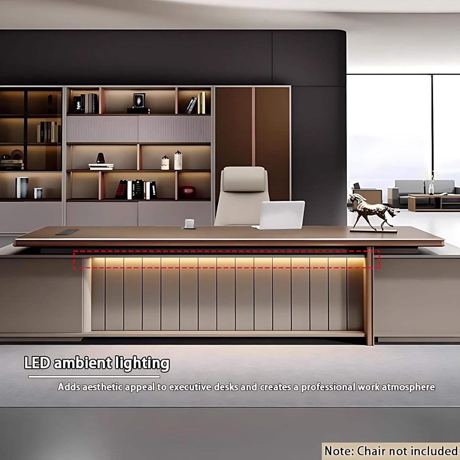 Hidden Cable Management & Computer Cabinet: Designed for tech-driven work, this modern executive desk includes discreet cable routing and a dedicated host cabinet to keep wires and devices secure. As a home office desk or office table, it creates a polished, professional look that supports efficiency and safety every day.
