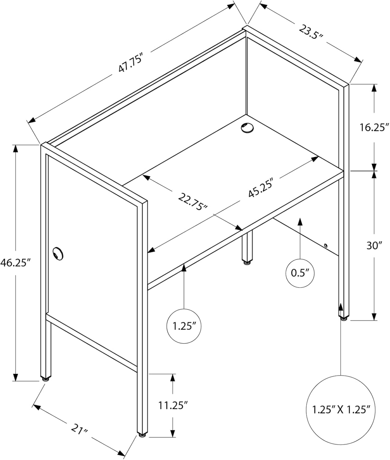Transform your workspace with this stylish and functional 48″L office cubicle in a sleek grey laminate finish and black metal frame. Durably designed to meet ANSI / BIFMA quality safety standards, this work station cubical comes with a 5-year limited warranty for your peace of mind. The fully finished back allows for versatile placement within your office space, while the privacy panel offers a bit of seclusion from a bustling work environment. The easy to assemble desk features a space saver cable management hole to keep your cords organized and out of the way. The easy to clean top ensures a pristine work surface at all times. With its fashionable style and contemporary design, this desk is perfect to place side by side in commercial environments or school libraries when you need to zone out for writing, studying, or any other work tasks. Easy to assemble with full illustrated instructions included, upgrade with this modern and functional workspace today!