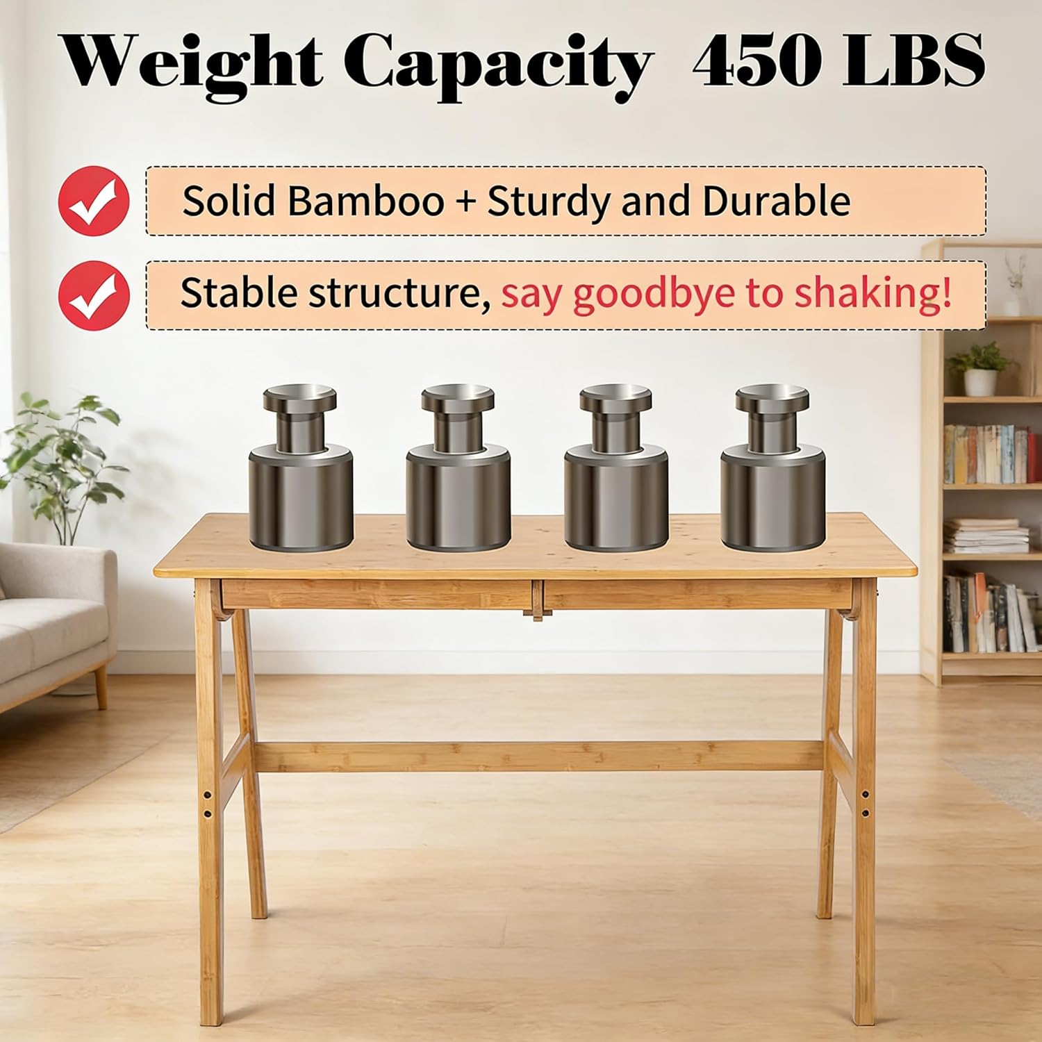 【Eco-friendly Bamboo Desk】: Selected quality bamboo; Crafted in detail. There will be a smooth surface. Easy to clean. Sturdy and durable. A crossbar between two legs is more stable
