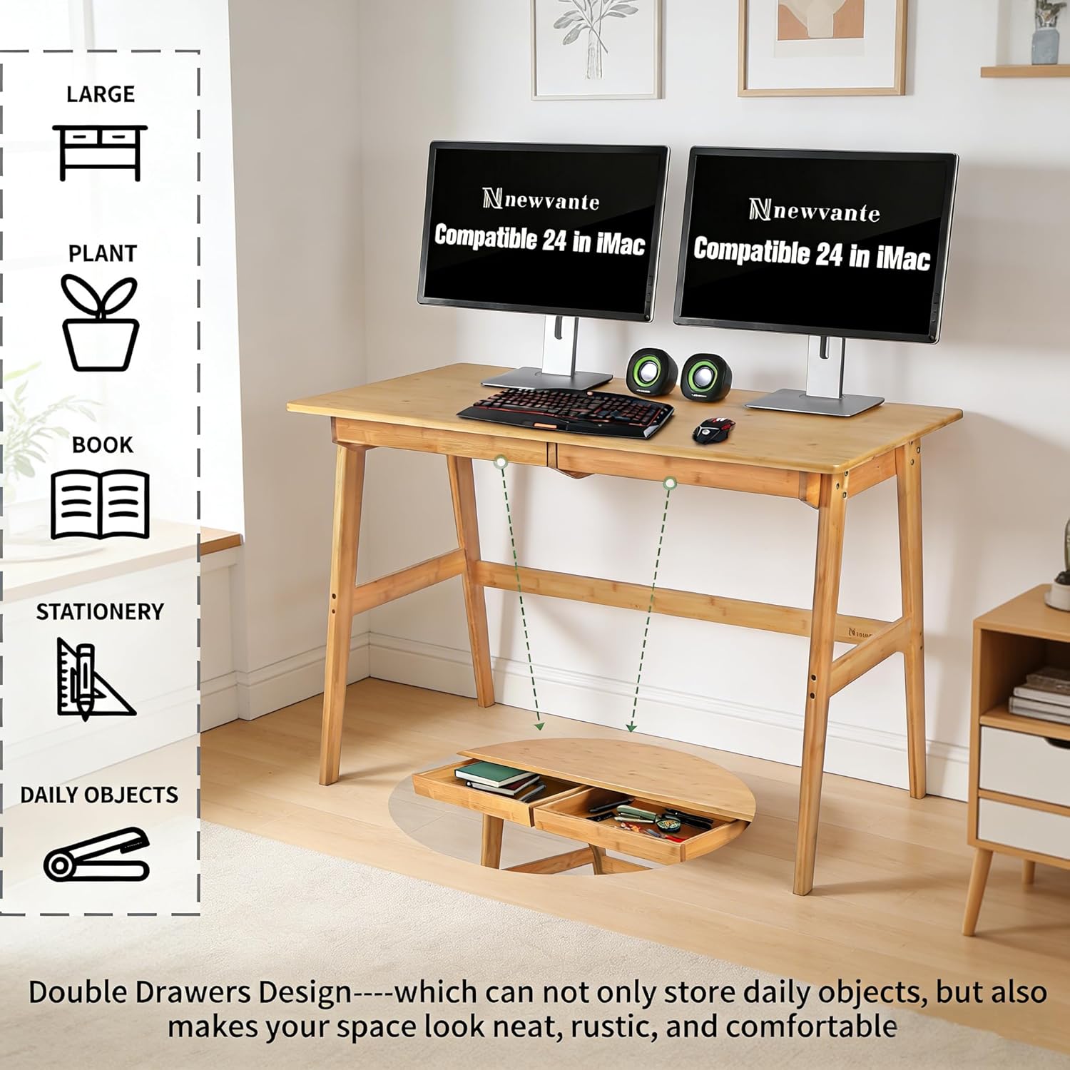 Modern Style Computer Desk: Get rid of tedious design, the bamboo computer desk’s simple line style brings a feel of minimalism to room, makes your space look neat, rustic, and comfortableSimplicity is Variety: The writing desk is versatile for any scenes – Study desk for child, Gaming table for boy/men, dressing table for women, a compact workstation for working from home. Home office both available