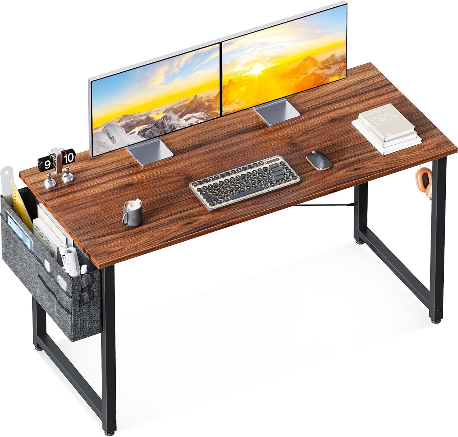 Desk with Storage: A side-mounted bag provides extra storage space for books or office supplies so as to optimize desktop organization. On the opposite side, a detachable hook allows you to hang headphone or bag.