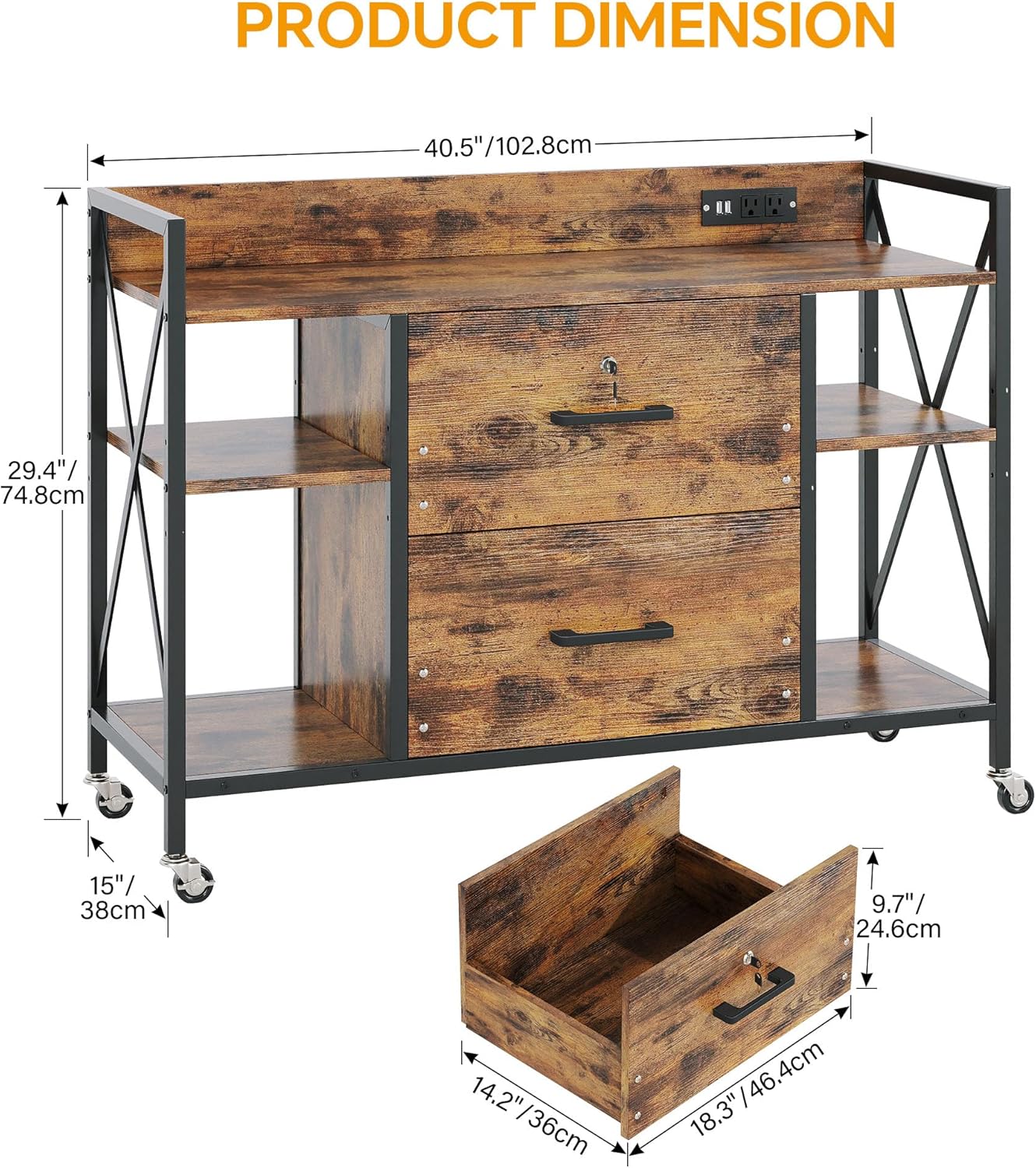 【Massive Workspace】 Never run out of juice! Power four devices at once (2 AC outlets + 2 PowerIQ USB ports) right from your cabinet. PLUS: Unleash productivity on the huge 44″ desktop – it effortlessly holds your printer, scanner, and more. Additionally, 4 accessible storage shelves (2 adjustable) store anything you want. Work smarter, not harder.