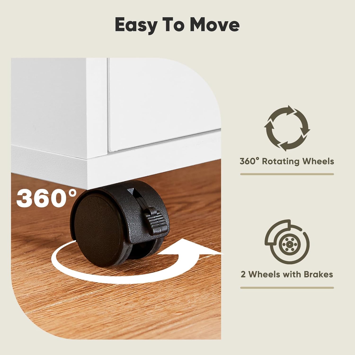 【Easy to Move & Relocate】 : Equipped with 4 smooth-rolling casters (2 with brakes), this cabinet is easy to move without damaging floors. Whether you’re rearranging your office or home, mobility is effortless.