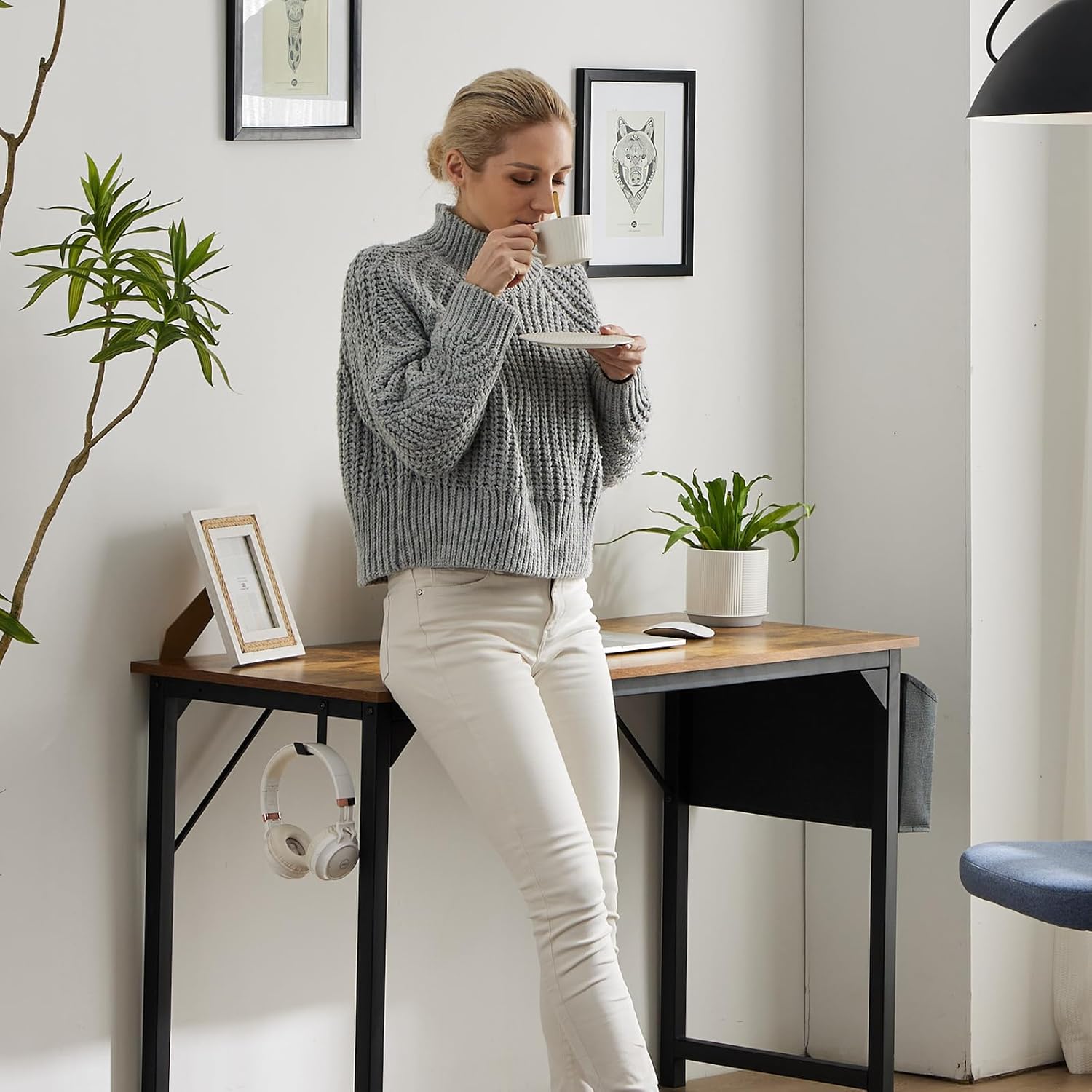 【𝗠𝘂𝗹𝘁𝗶𝗽𝘂𝗿𝗽𝗼𝘀𝗲 𝗦𝘁𝗼𝗿𝗮𝗴𝗲 𝗗𝗲𝘀𝗶𝗴𝗻】These small computer desk for small spaces are designed with a side storage bag and iron headphone hook. You can put your magazine, files, books, and posters in the storage bag, gaining more storage space, and making the desktop tidier. The headphone hook can hang your headphone or bag firmly. Well organize your sundries. Work without mess, work with tidy