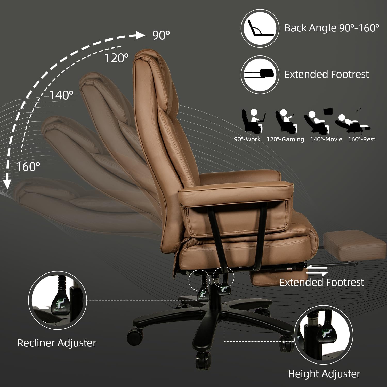 Reclining Feature with Retractable Footrest: Kick back and relax with a smooth reclining function and a hidden footrest that easily deploys, offering perfect support for short naps or comfortable stretching during extended work sessions