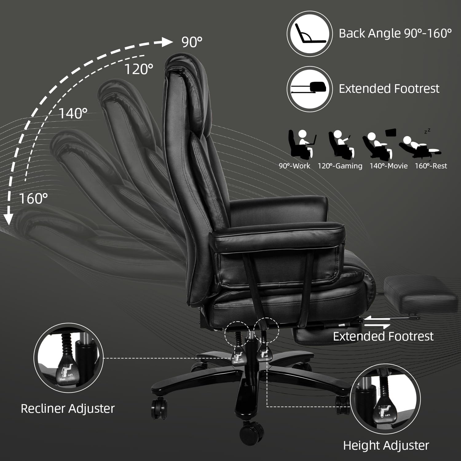 Reclining Feature with Retractable Footrest: Kick back and relax with a smooth reclining function and a hidden footrest that easily deploys, offering perfect support for short naps or comfortable stretching during extended work sessions