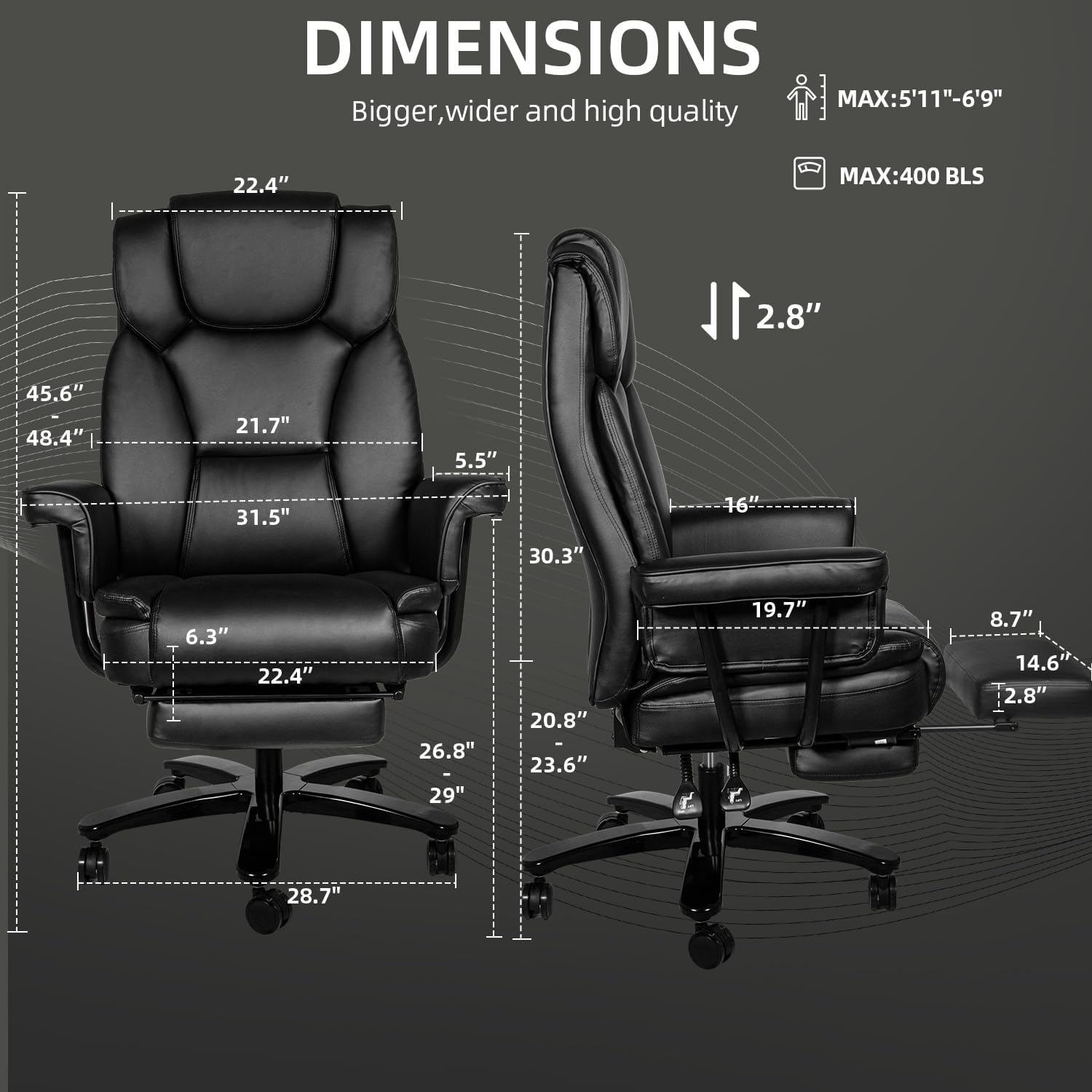 Designed for Big & Tall Users up to 400lbs: Engineered with an extra wide criss cross reinforced frame and high-density cushioning to provide solid, stable support for long hours of sitting, ensuring comfort and durability for larger body types