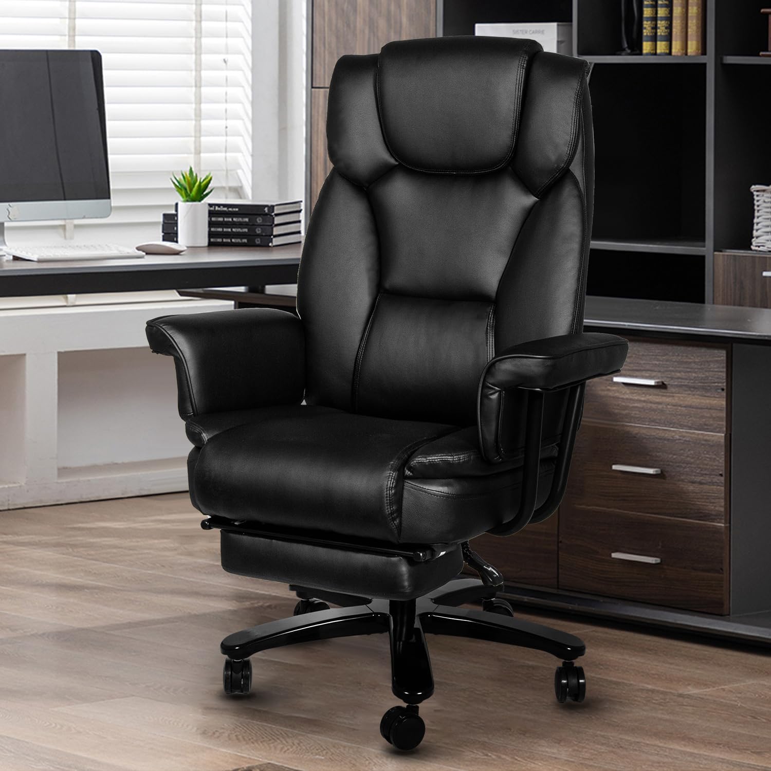 High Back Ergonomic Support & PU Leather Comfort: A tall, contoured backrest paired with premium PU leather upholstery delivers full spinal alignment and breathable, easy-to-clean comfort that lasts through daily use