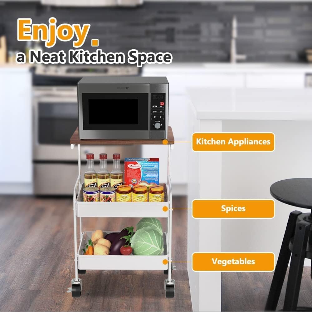 MULTIFUNCTIONAL STORAGE CART: Our 3 tier utility rolling cart not only can be used as a kitchen storage rack, but also as a snack side table or mobile printer stand. It is suitable for decorating your indoor or outdoor space.