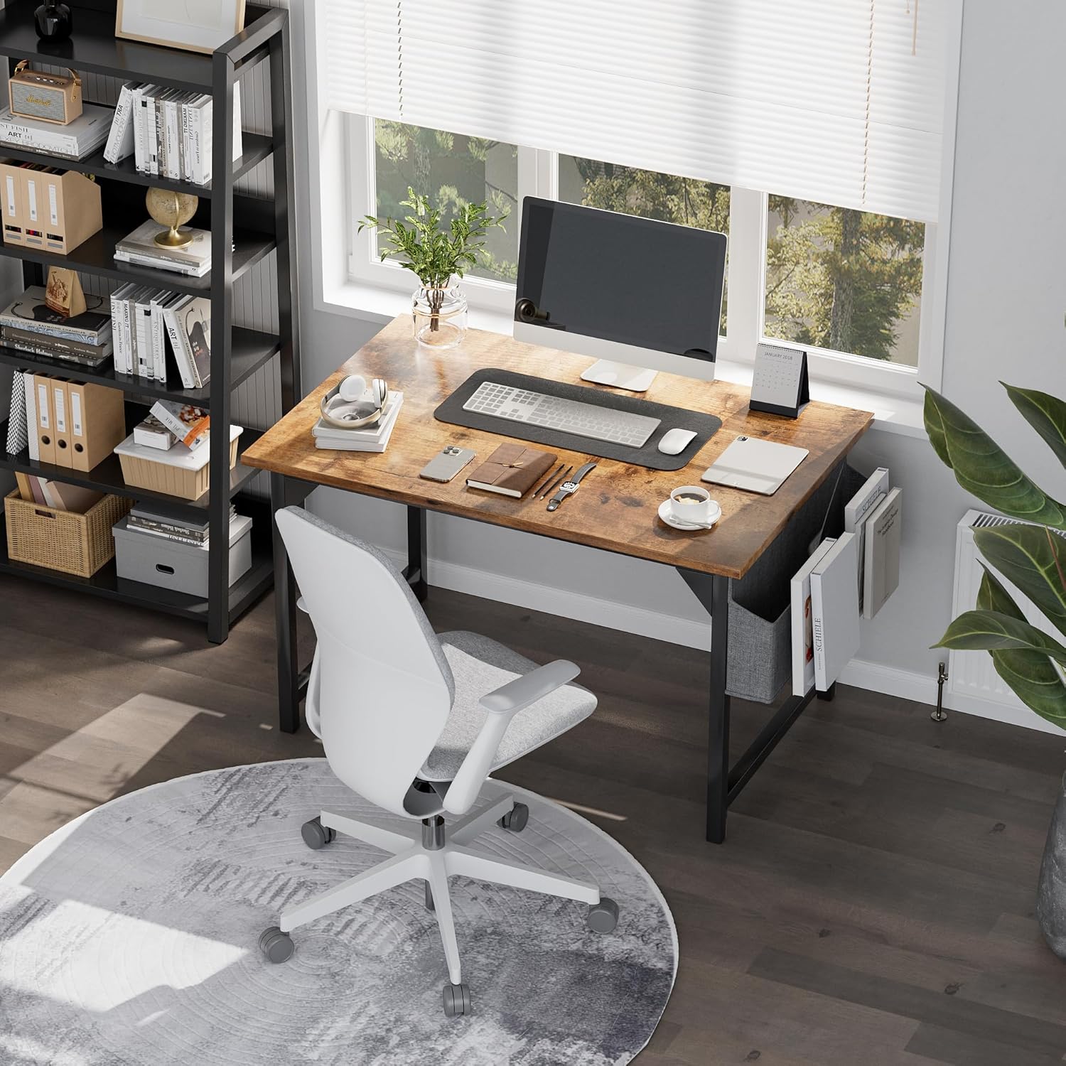 【Maximized Storage Solutions】Stay organized with the additional storage bag and convenient hook for headphones, bags, or umbrellas. This thoughtful design helps you keep clutter off your desk, while the storage bag provides ample room for books, files, and other essentials—keeping everything you need within easy reach.